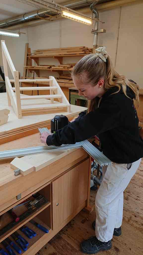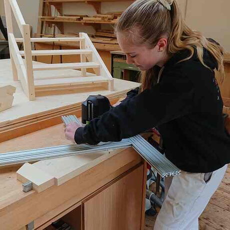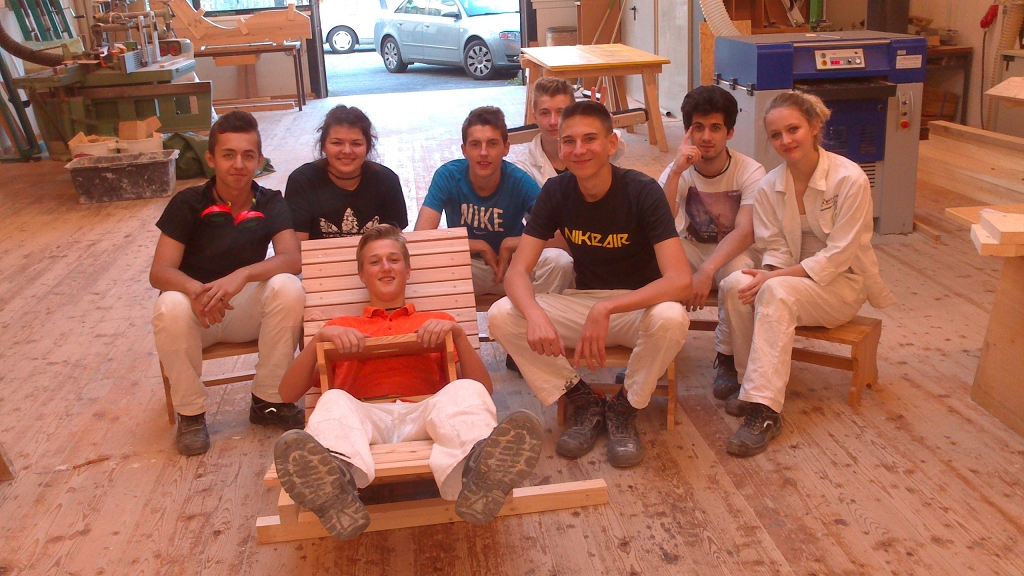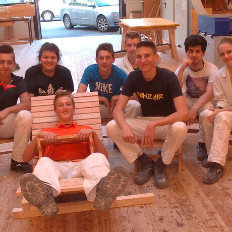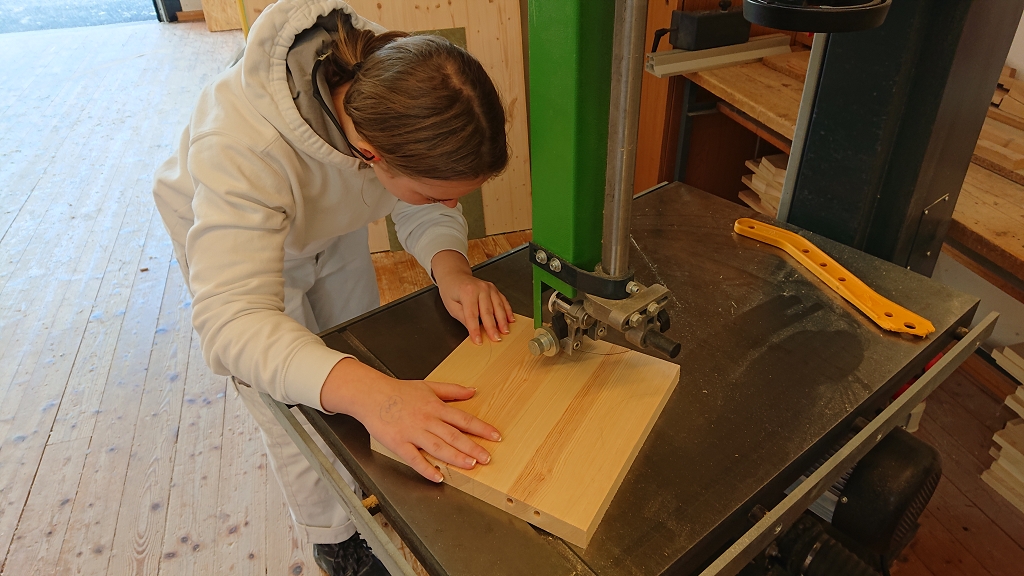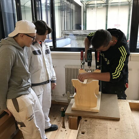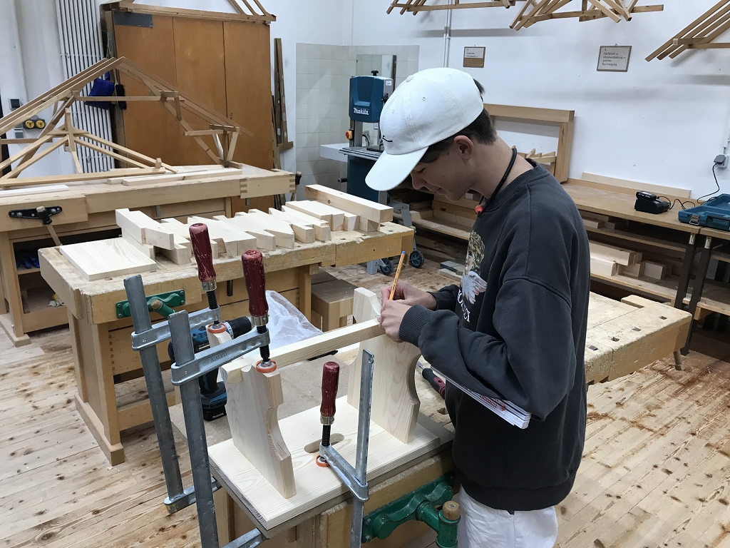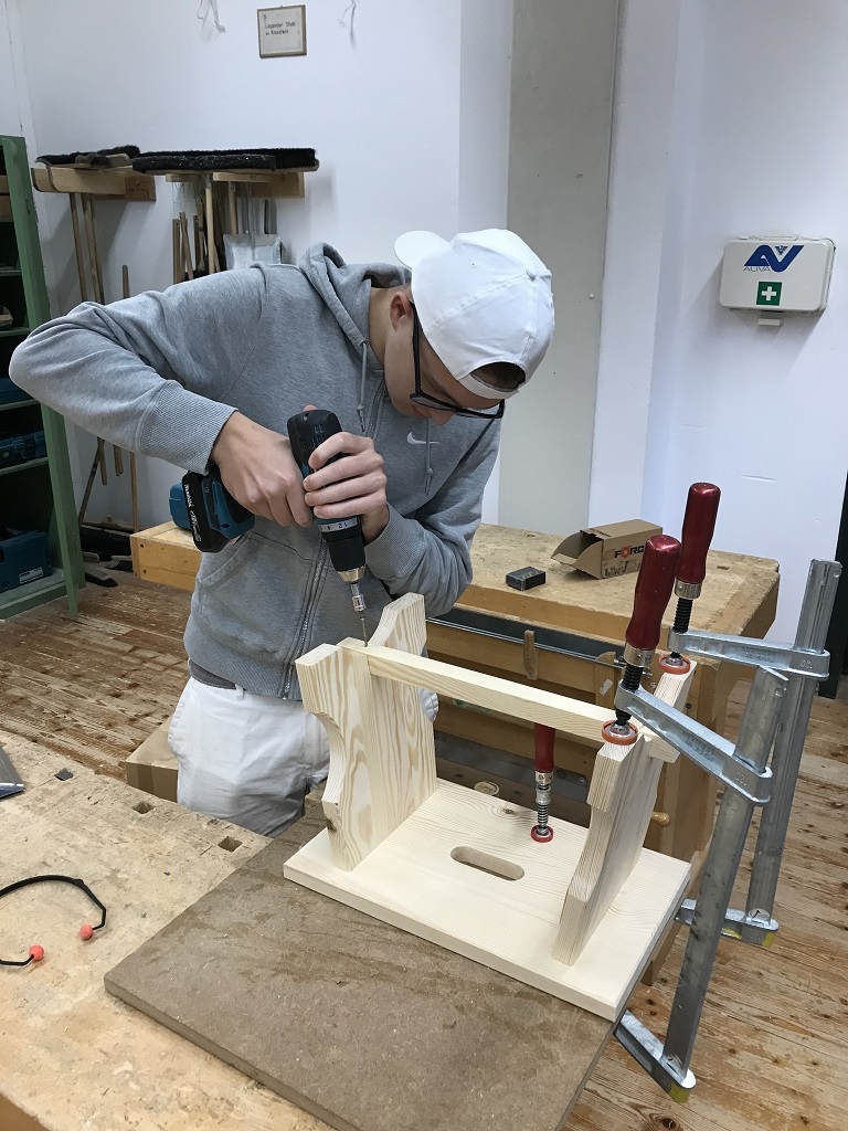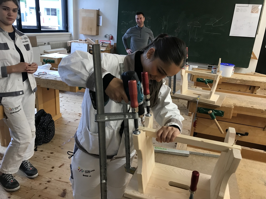 Im Zuge der Ausbildung erstellen die Schülerinnen und Schüler Werkstücke, wobei es auch um das richtige Verleimen, um Holzverbindungen und um den Baustoff Holz geht.