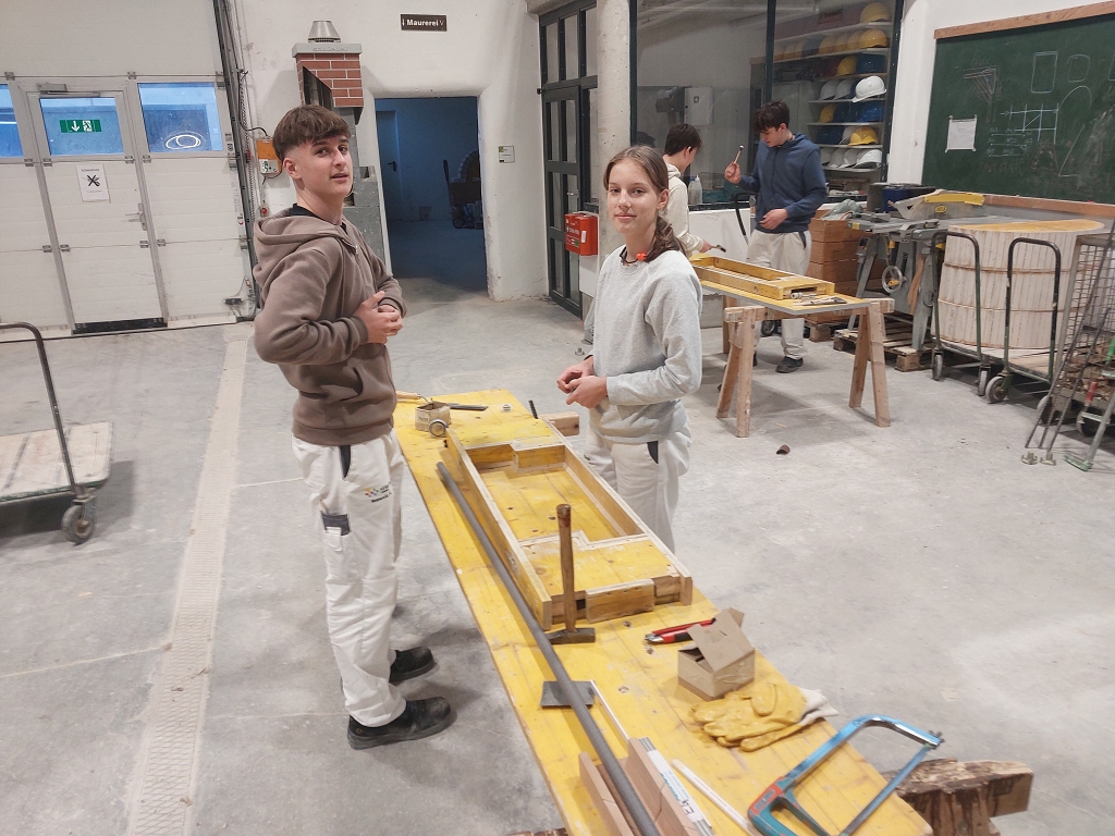 Die Schülerinnen und Schüler der 1 BHBT haben in einem praxisnahen Projekt ihr handwerkliches Können unter Beweis gestellt. Im Rahmen des Unterrichtsfaches Baupraxis und Produktionstechnik fertigten sie eine Schalung für ein Blumenbeet an und betonierten diese anschließend.
