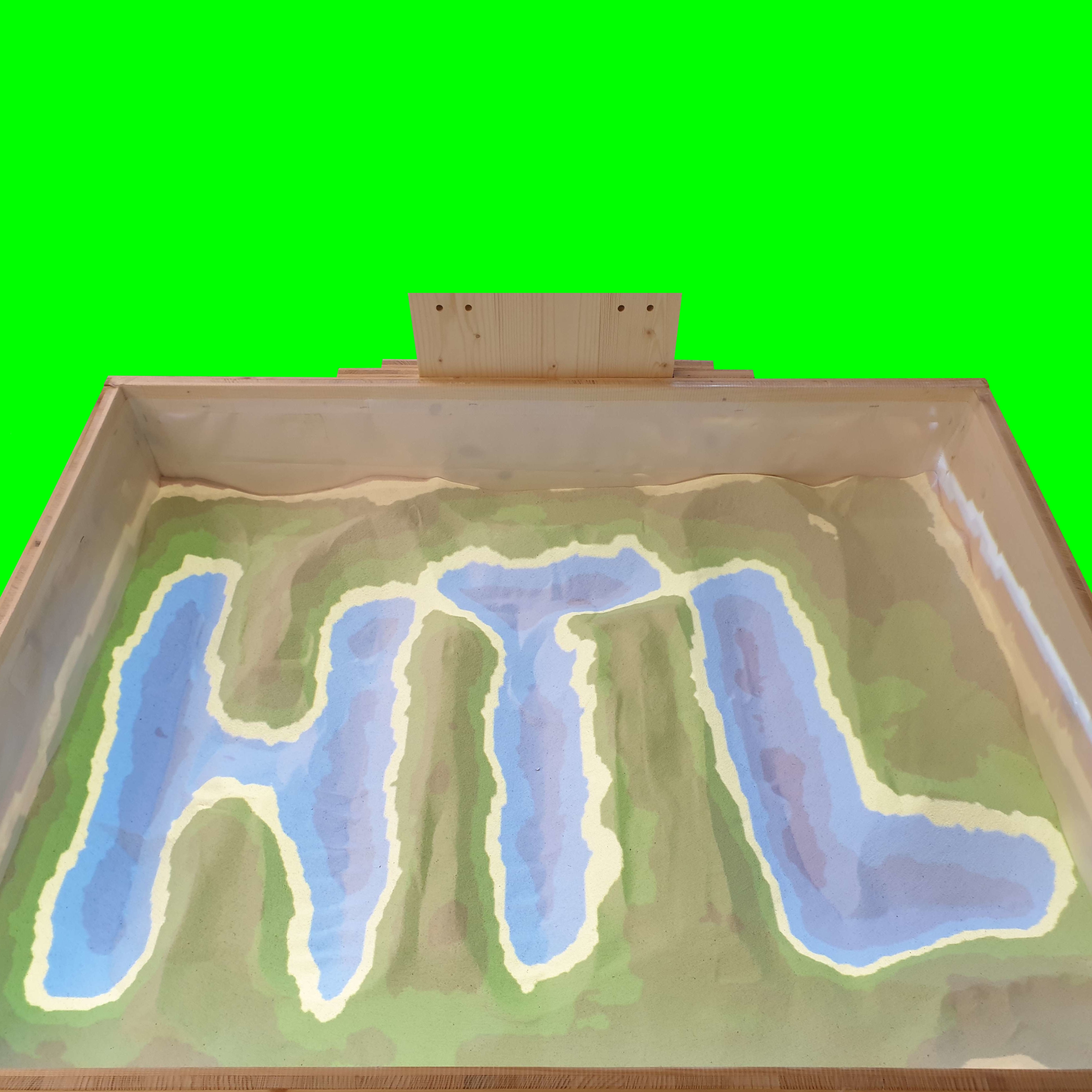 Interessierte Nutzer modellieren Sand in einer dafür konstruierten Box. Die auf den Sand projizierten Höhenschichtlinien werden dabei in Echtzeit angepasst. Der Benutzer hat die Möglichkeit alternative Bildfilter und spielerische Simulationen zu aktivieren. Mithilfe eines Projektors, einem Touchdisplay, einer zentralen Recheneinheit und einer Intel-3D-Kamera soll dieses Ziel erreicht werden.