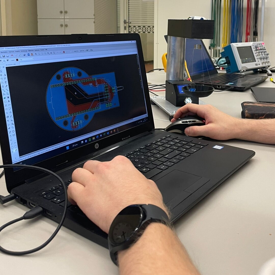 Das Herzstück des Projektes ist ein ESP32 Mikrocontroller, der mit Hilfe komplexer Regelalgorithmen einen Elektromagneten so ansteuert, dass die Waagschale immer in der Luft gehalten wird. Das ermittelte Gewicht wird dabei auf einem Display angezeigt. Ein Webserver ermöglicht es dem Anwender, die Waage über eine komfortable Oberfläche zu bedienen. So können einerseits diverse Einstellungen wie zum Beispiel die Schwebehöhe vorgenommen werden, andererseits kann das Gewicht auf einem Bildschirm oder am Handy visualisiert werden.