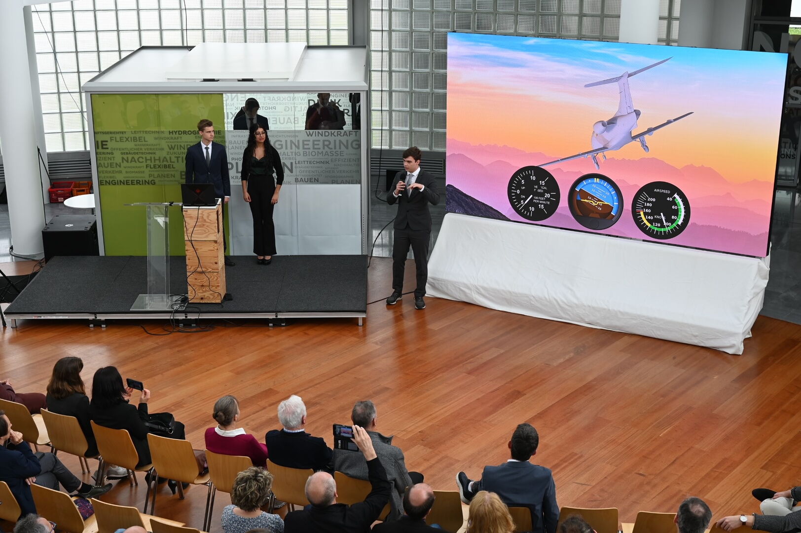 Im Flugzeug befinden sich ein ESP32 Mikrocontroller, der über verschiedene Sensoren Werte aufnimmt, verarbeitet und dann per Funk an die Bodenstation sendet. Die Position, Höhe und Geschwindigkeit werden durch ein GPS-Modul aufgenommen. Die Höhenänderung in [m/s] wird mittels Barometers über die Luftdrucksänderung gemessen und errechnet. Für die Fluglage wird ein Gyrosensor verwendet, der Winkel und g-Kräfte misst. Diese Daten werden zusammengefasst und über ein 433MHz Funksystem zum Piloten am Boden gesendet.