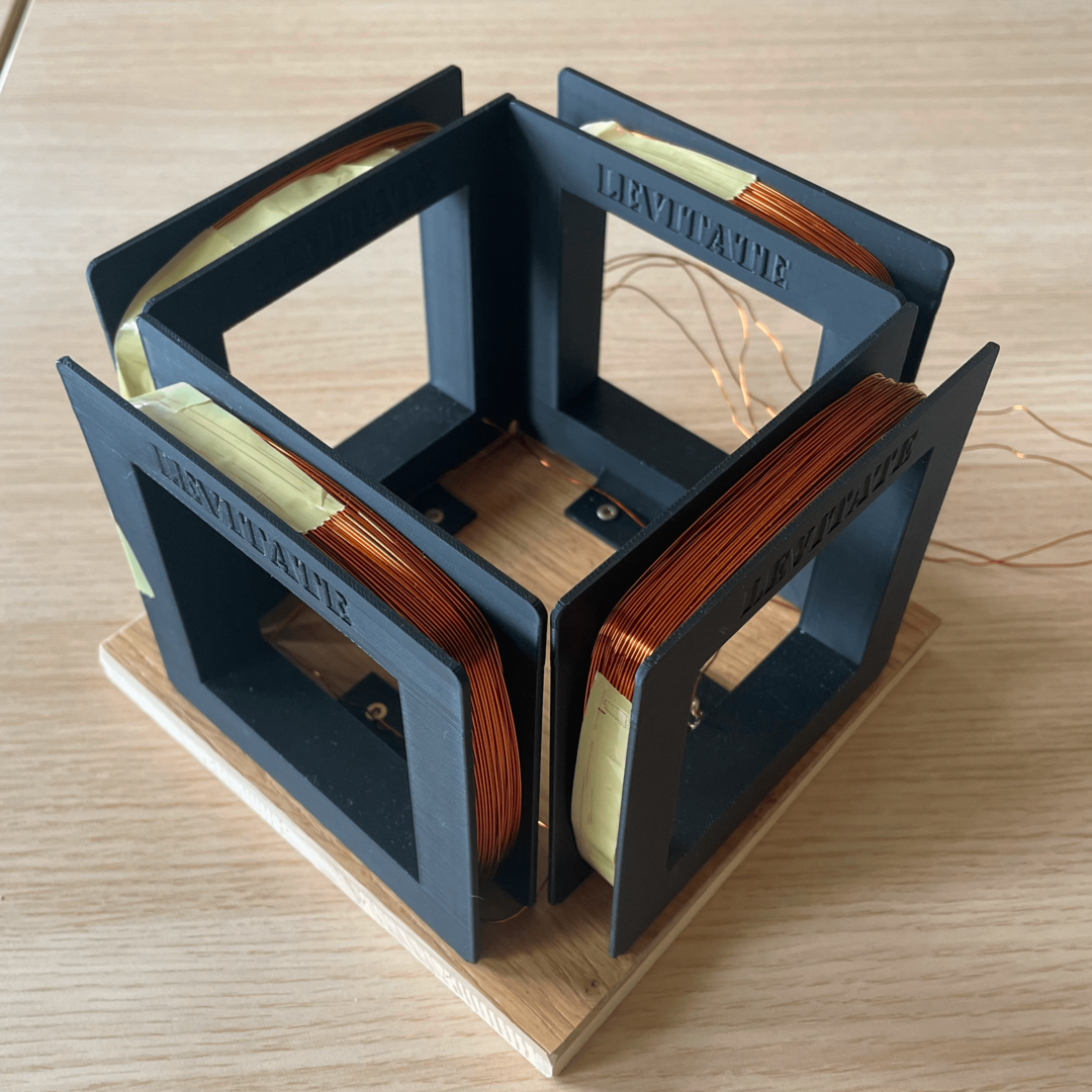 Es soll ein Gerät entwickelt werden, das imstande ist, eine Plattform über ein Magnetfeld in der Luft zu halten. Des Weiteren sollte das Gerät die Plattform über ein Drehfeld drehen können und somit eventuelle Ausstellungsstücke von allen Seiten zeigen können.