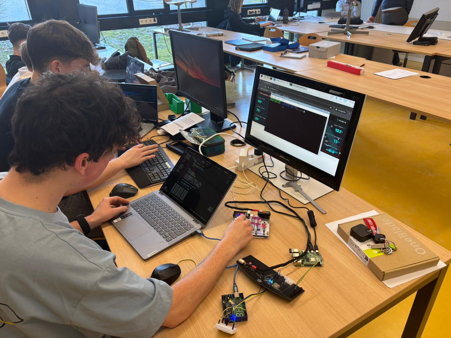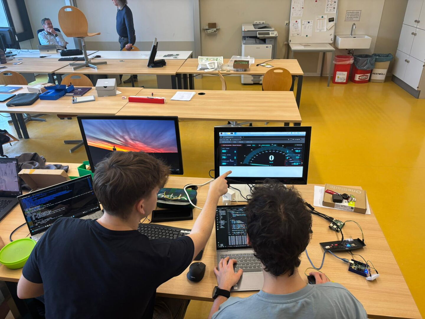 Ziel des Projekts ist die Entwicklung eines universell einsetzbaren Systems, das Fahrzeugdaten über die OBD-Schnittstelle in Echtzeit erfasst, diese um Messwerte zusätzlicher Sensorik ergänzt, verarbeitet und übersichtlich visualisiert. Neben der unmittelbaren Darstellung auf einem Display werden die Messwerte für spätere Analysen lokal gespeichert. Zur vertiefenden, langfristigen Auswertung erfolgt zudem eine Datenübertragung an eine eigens entwickelte Webanwendung, die eine strukturierte Aufbereitung der Informationen von jeglichem Standort ermöglicht.