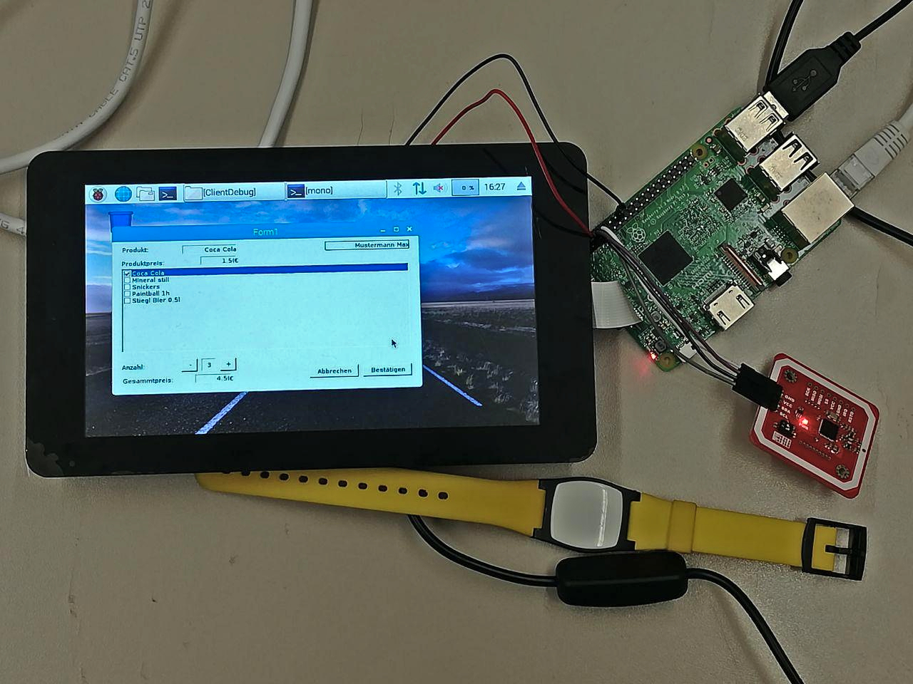 Es sollen drei verschiedene Clienten entwickelt werden, welche über Wifi Bestellungen an den Gatstroserver senden. Ein GUI (graphical user Interface) soll den Kunden durch den Bezahlungsvorgang leiten. Die verschiedenen Anwendungsfälle beinhalten die Ansteuerung von simplen Spieleautomaten, die Ansteuerung von Getränkeautomaten und das Bestätigen eines Vertrages. Der Benützer soll mit einem NFC-Armband verbunden werden, mit dem an einem NFC-Scanner bezahlt wird.