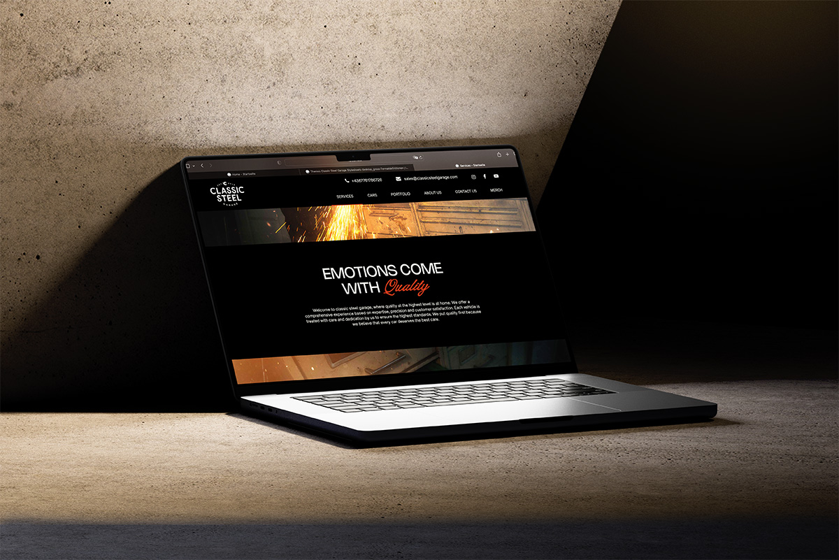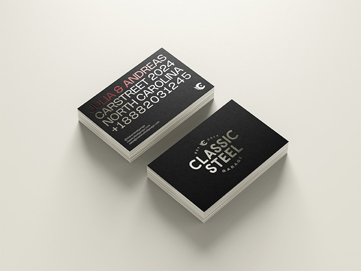 Das Projekt umfasst die Entwicklung eines vollständigen visuellen Auftrittes für die Oldtimerwerkstatt „Classic Steel Garage“, welcher nach einer effektiven Etablierung der Firma im amerikanischen Markt strebt und eine zielgruppenaffine Kommunikation nach außen gewährleistet.