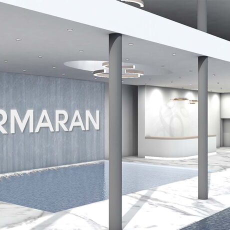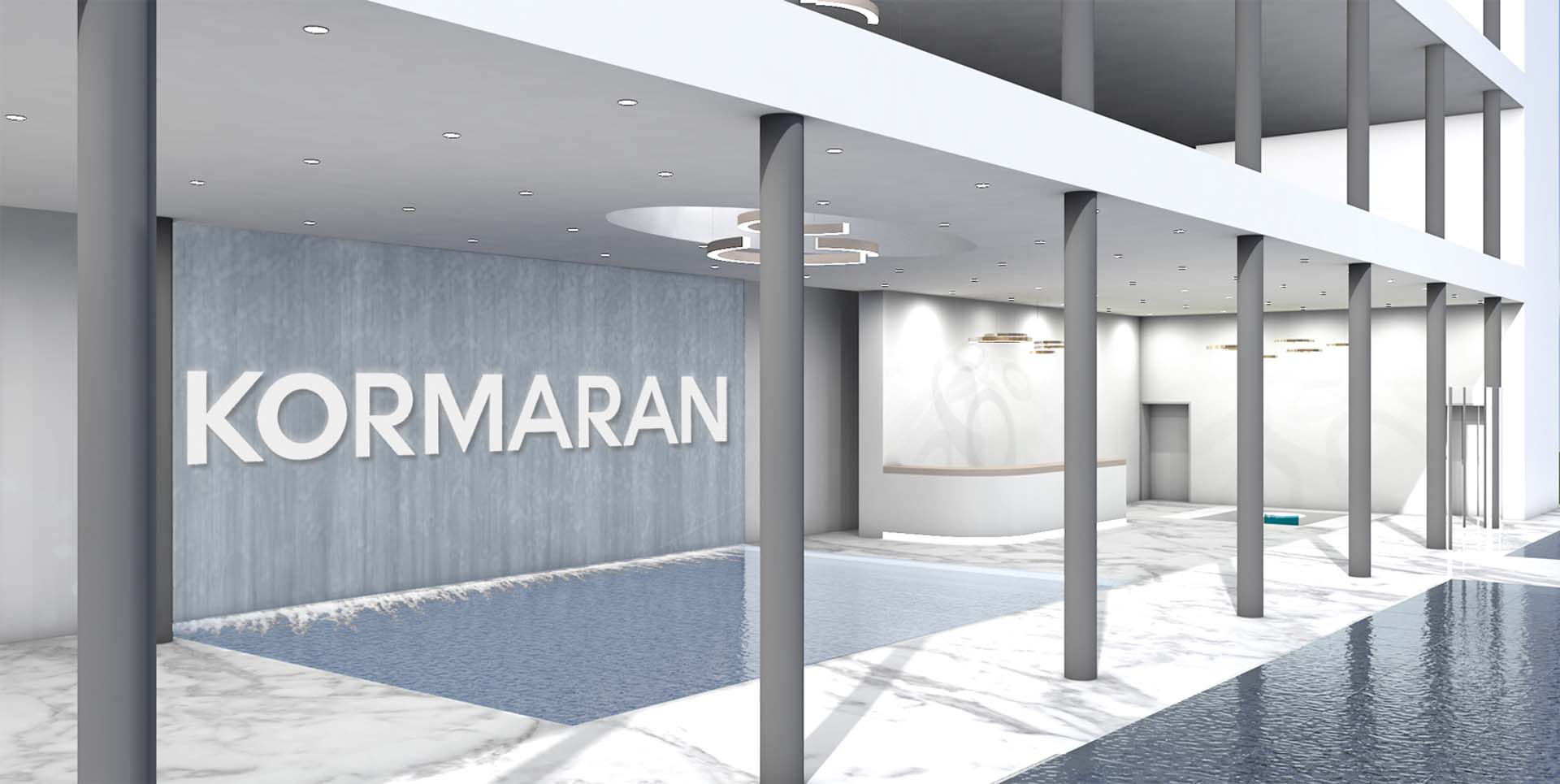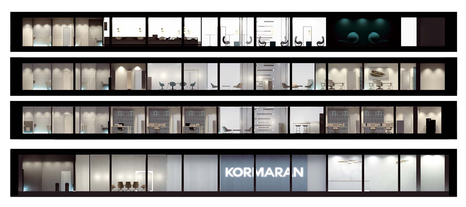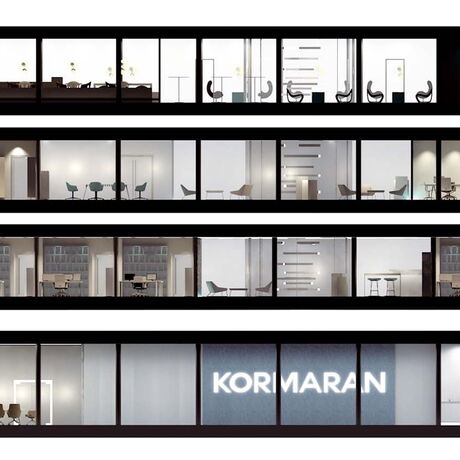 Durch das Praktikum bei der Firma Kormaran hat das Projektmitglied Jana Back in Erfahrung bringen können, dass die Firma aufgrund der stetig wachsenden MitarbeiterInnenzahl und der abgelegenen Produktionshalle ein neues Bürogebäude errichten möchte. Die Firma war natürlich sofort damit einverstanden, dass das Team für sie ein Gestaltungskonzept für die zukünftigen Büroinnenräume entwickelt. Die einzigen Anforderungen waren das Zusammenführen des Büros mit der Fertigungshalle und eine bessere Kommunikation unter den MitarbeiterInnen. Dadurch, dass die Firma selbst noch keinen Architekten engagiert hat, musste das Team ein bereits bestehendes Gebäude als Grundlage verwenden. Letztendlich haben sie sich für den Competence Centre Glastroesch der Becker Architekten entschieden. Das ursprünglich 2-geschossige Gebäude wurde im 3D-Programm ArchiCAD in ein 4-geschossiges Bürogebäude transformiert.