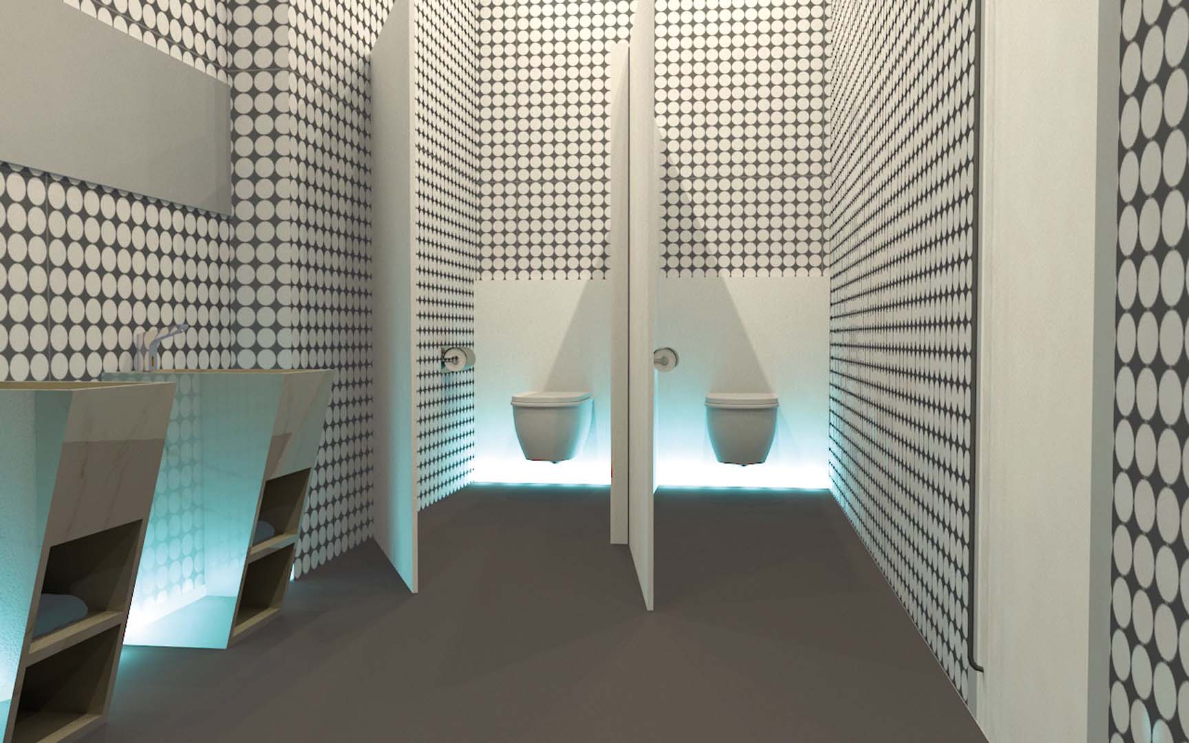 Anschließend wurden die Räumlichkeiten auf die Teammitglieder aufgeteilt und jeweils wurden Begriffswolken und Moodboards passend zu den jeweiligen Bereichen erstellt. Für die jeweiligen Bereiche wurden Renderings gemacht und Grundrisse gezeichnet. Zusätzlich wurden Stoffmuster entwickelt, die auf dem Jacquard-Webstuhl gewebt wurden oder mit Hilfe von Siebdruck auf verschiedene Stoffe wie Handtücher und Kissenbezüge gedruckt wurden.