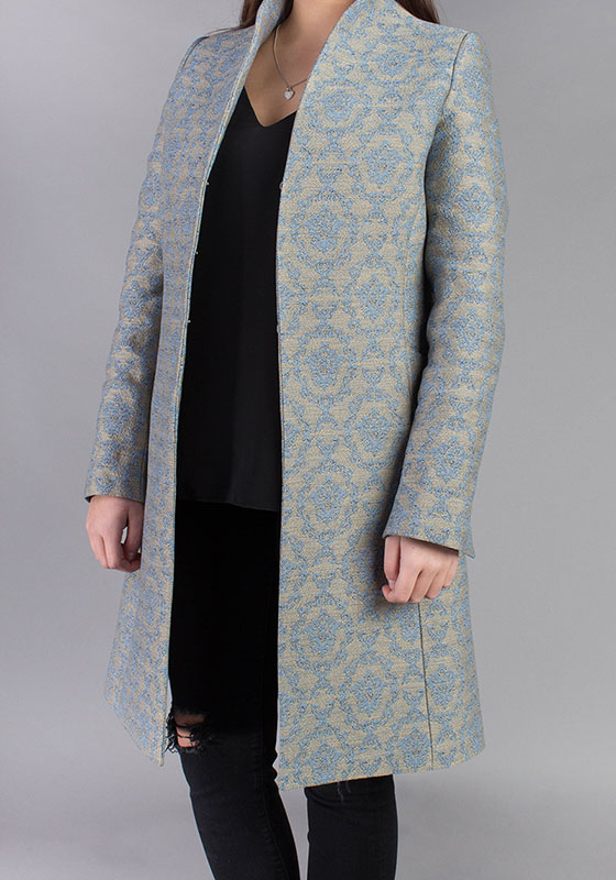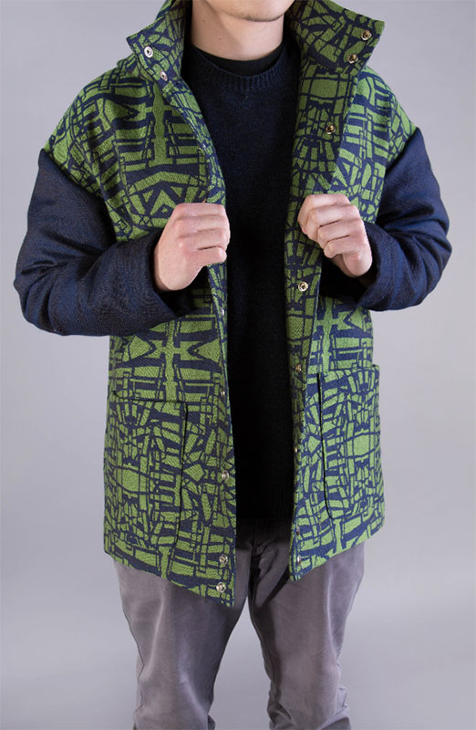 Die Jacquardweberei ist heutzutage die modernste Form der Weberei. Dabei ist es möglich, mehrfarbige und auch kleingemusterte Stoffe zu produzieren. Diese Technik machen wir uns zu Nutze, um unsere Wunschvorstellungen der Werkstücke, die entstehen sollen, umzusetzen. Von jedem wird eine textile Musterkollektion erstellt, die jeweils von einer anderen Kunstrichtung inspiriert ist. Graffiti, der Barock, sowie keltische Muster sind die Hauptthemen, die wir in unsere Entwürfe mit einfließen lassen. Die Schnitte der fertigen Jacken und Mäntel unterscheiden sich voneinander und sind an die jeweiligen Designs individuell angepasst.