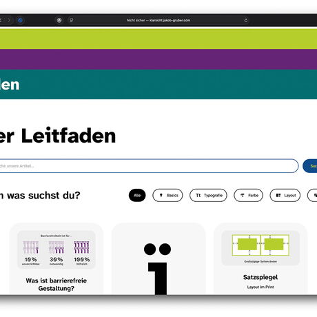 "Klarsicht" ist ein praxisnaher Leitfaden zur barrierefreien Gestaltung, der sich gezielt an angehende Designer:innen richtet und einen verständlichen Zugang zu einem oft komplexen Thema schafft. Im Fokus steht die Vermittlung von Wissen, das im Gestaltungsalltag direkt angewendet werden kann – sowohl im digitalen als auch im analogen Bereich.