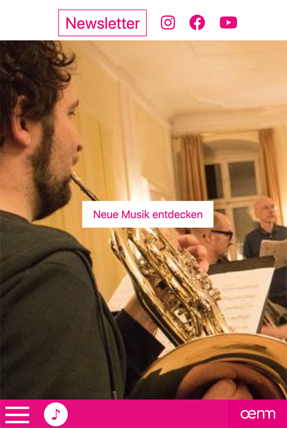 Das Ziel des Projektes war es, dass oenm (österreichische Ensemble für Neue Musik) auch für eine junge Zielgruppe attraktiv zu machen, somit das Konzertpublikum zu erweitern und dabei einen roten Faden durch das gesamte Auftreten des Ensembles zu ziehen. Dies sollte einerseits mit der Gestaltung eines Printprodukts, das Magazin einer Veranstaltungsreihe welches im Frühling stattfinden sollte, und dem Redesign der Website erreicht werden. Zudem war die Erstellung eines Styleguides von Bedeutung, um auch zukünftig für eine klare Linie zu sorgen.