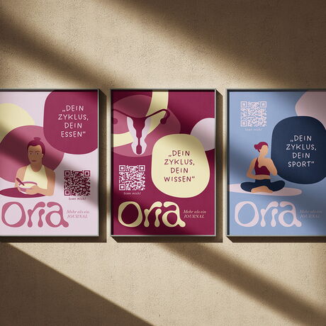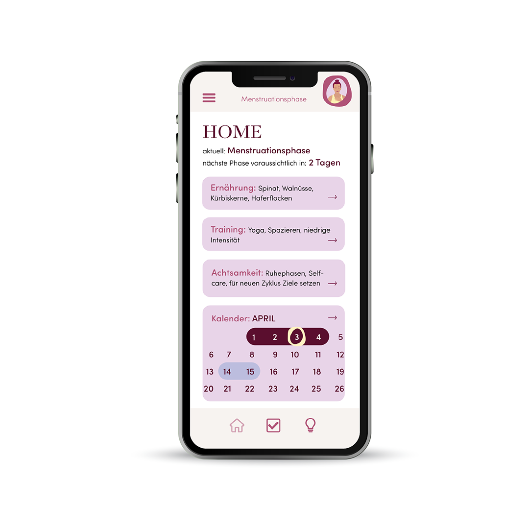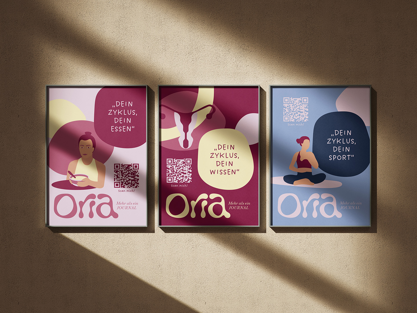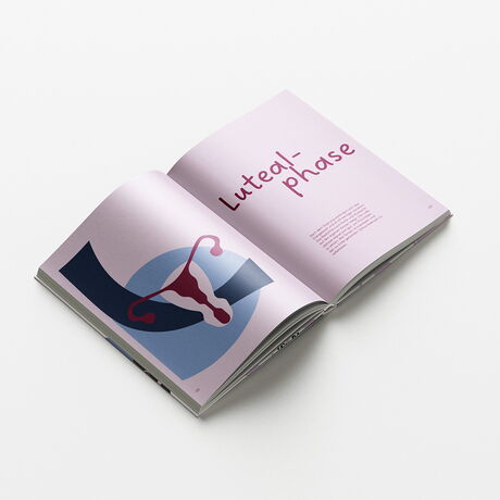 Das interaktive Journal enthält Wissen über den Zyklus und Hormone, Trainingsübungen, Rezepte, Ernährungstipps, Reflexionsseiten sowie Tracker und begleitet Nutzerinnen durch ihren Zyklus. Social Media und ein Prototyp einer App erweitern das Konzept. Alle Elemente, inklusive textliche Inhalte, wurden von uns eigenständig entwickelt.