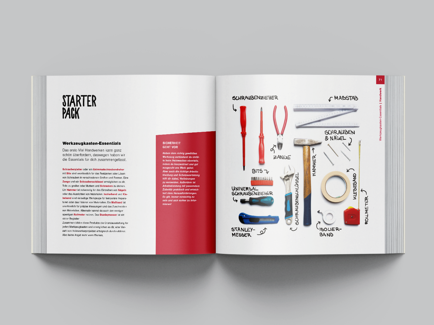 Mit Anleitungen, Beispielen und Tipps dient das Buch als Anlaufstelle für junge Erwachsene, um ihnen eine Stütze im Alltag zu sein. Im Rahmen der Projekterstellung wird mit fotografischen, typografischen und illustrativen Elementen gearbeitet.