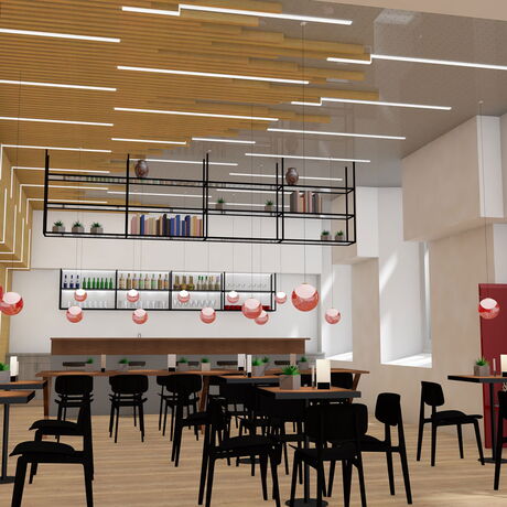 Zielsetzung des Projektes war es, für eine bessere Kommunikation unter den Mitarbeitern zu sorgen und das Potential der Academy Bar best möglich auszuschöpfen um daraus ein passendes Interior Design zu entwickeln.