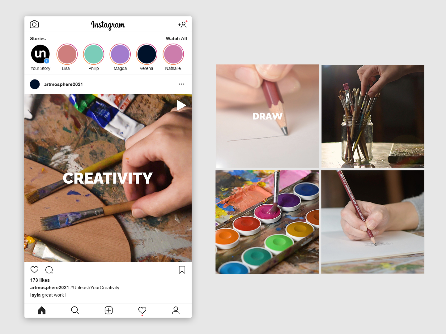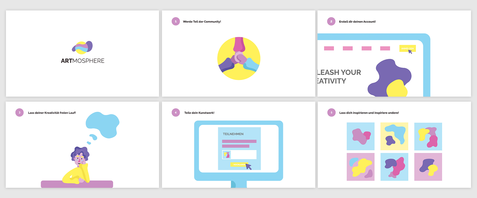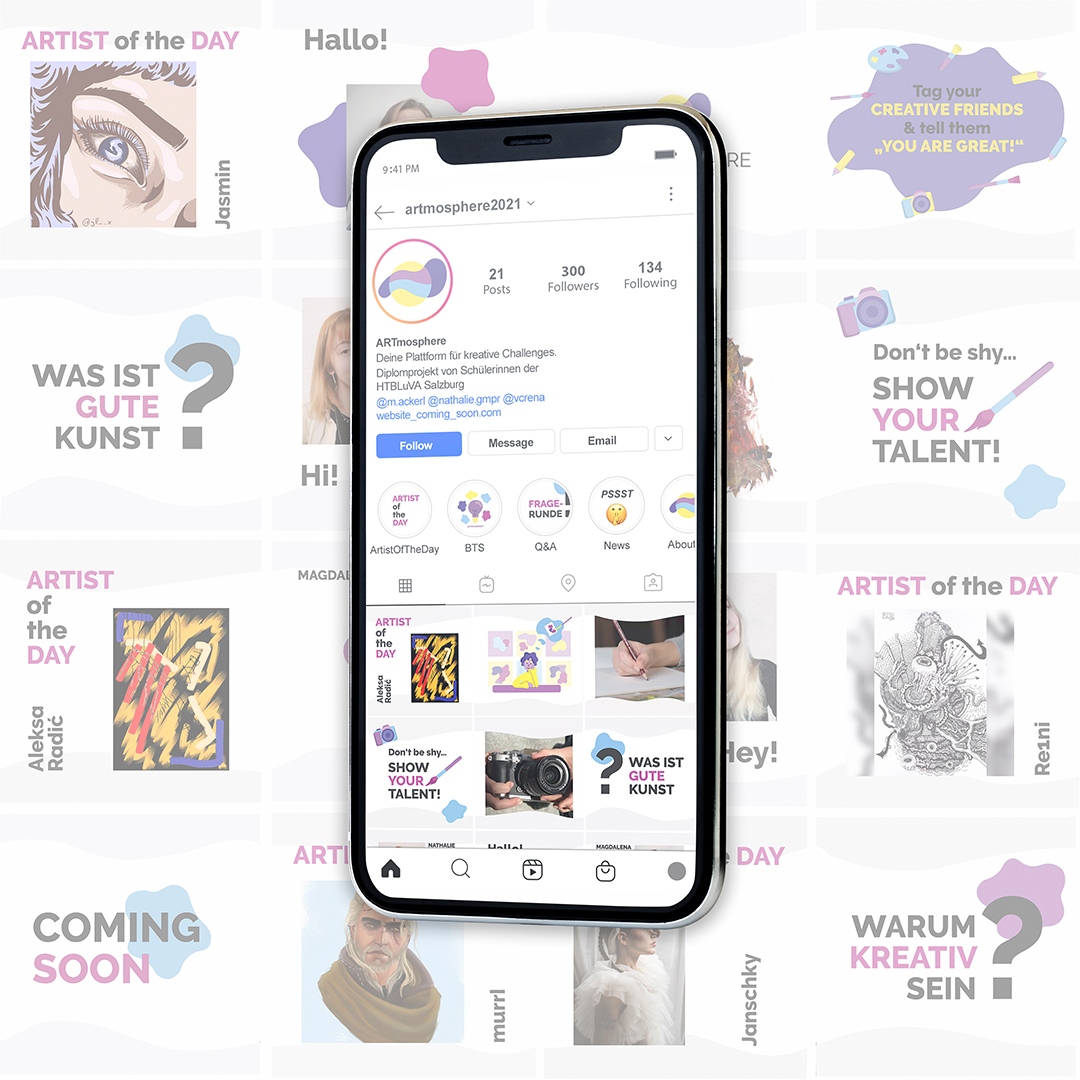 Auch wenn Kreativität eine stabilisierende Wirkung auf die menschliche Psyche hat und dabei hilft, tägliche Situationen aus einem anderen Blickwinkel zu betrachten, verliert diese im Leben von Jugendlichen immer mehr an Priorität. Vor allem Schülerinnen und Schüler sind das Arbeiten nach strikten und genauen Vorgaben gewohnt und haben selten die Möglichkeit, sich ganz nach ihren eigenen Vorstellungen mit kreativen Prozessen auseinanderzusetzen. Unser Team, bestehend aus Magdalena Ackerl, Nathalie Gamper und Verena Zmollnig, macht es sich mit diesem Projekt zum Ziel, junge Menschen dabei zu unterstützen ihre Kreativität auszuleben und sie darin zu fördern, sich mehr Zeit für künstlerisches Arbeiten zu nehmen. Wir wollen Anreiz, Motivation, Inspiration und eine Plattform für freie Kreativität bieten. Im Zuge des Diplomprojekts entstand eine frei zugängliche Plattform im Web, welche durch monatliche Challenges zum kreativen Arbeiten motiviert, einen Platz zum Veröffentlichen bietet und auch Inspiration durch andere ermöglicht. Für einen geeigneten visuellen Auftritt wurde ein umfangreiches Corporate Design entwickelt. Des Weiteren wurden, um auf das Projekt aufmerksam zu machen, Werbemittel in Form von Print, Video und Social Media konzipiert und erstellt. Das Resultat des Projekts soll eine Plattform sein, welche Schülerinnen und Schüler durch die Teilnahme an den Challenges zu mehr Kreativität motiviert, ihnen die Möglichkeit gibt, ihr Talent zu zeigen und sich zusätzlich gegenseitig durch einen wertschätzenden Umgang zu inspirieren.