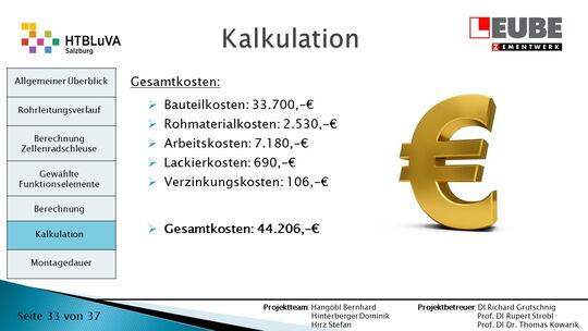 Ausgehend von den Anforderungen wurden als erstes einige Skizzen des Rohrleitungsverlaufes entworfen, um daraus ein CAD-Model erstellen zu können. Währenddessen wurde mit der Auslegung der Zellenradschleuse und des Rohrleitungsdurchmessers begonnen. Durch die erhaltenen Anforderungen konnten die Funktionselemente ausgewählt werden. Anschließend wurde die Montagedauer ermittelt und eine Kostenrechnung erstellt.