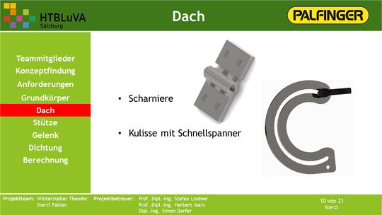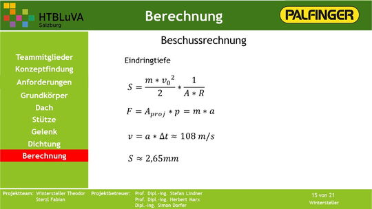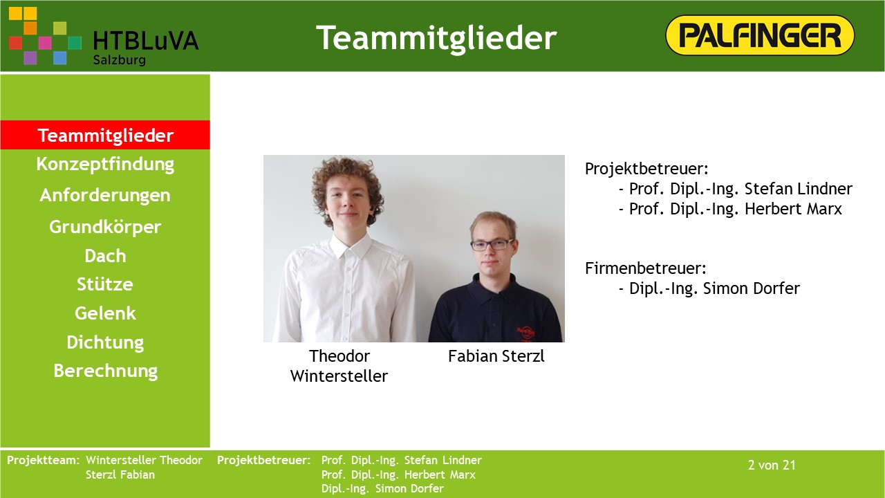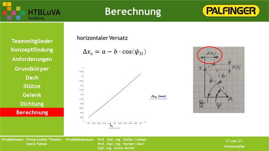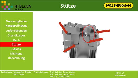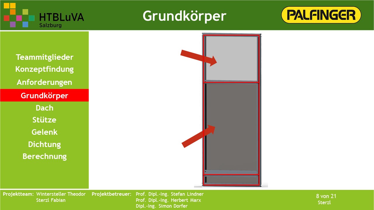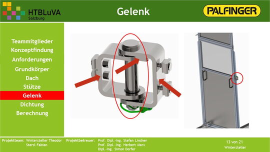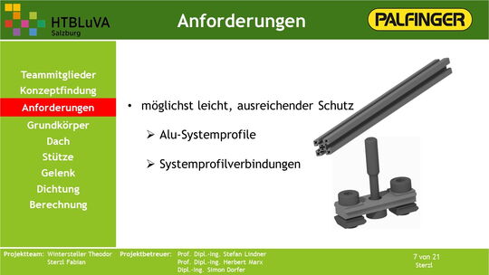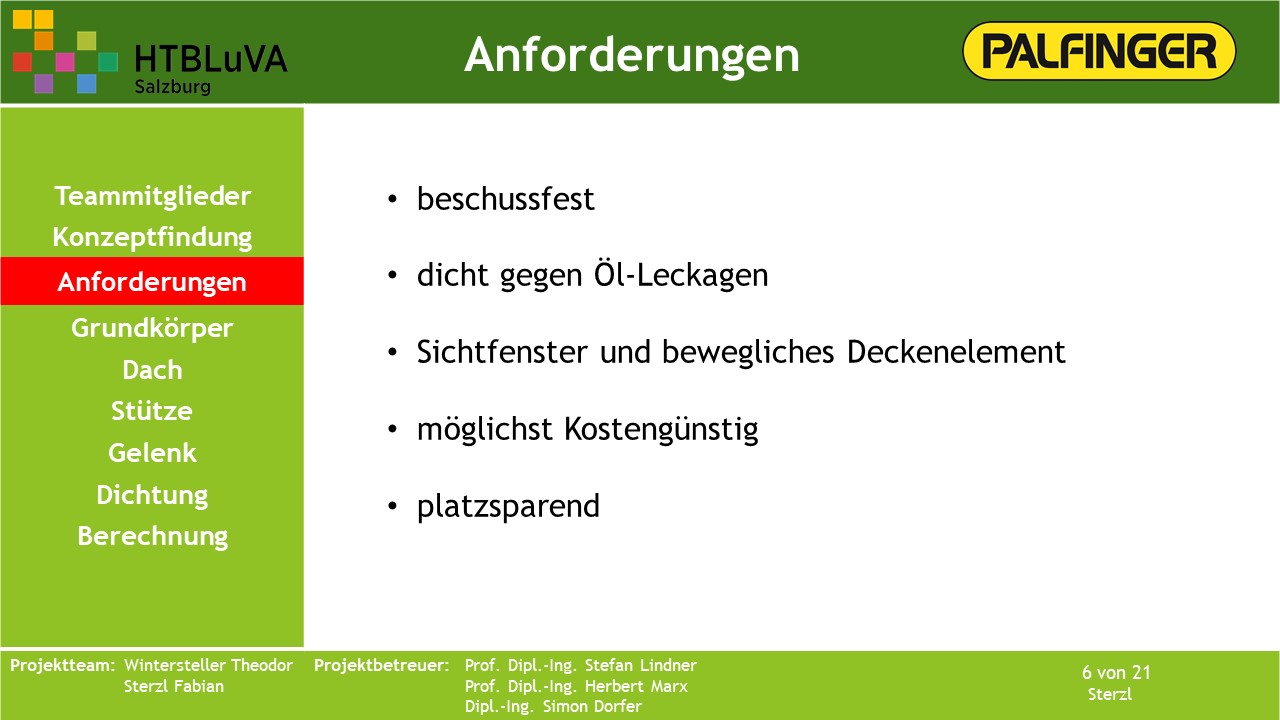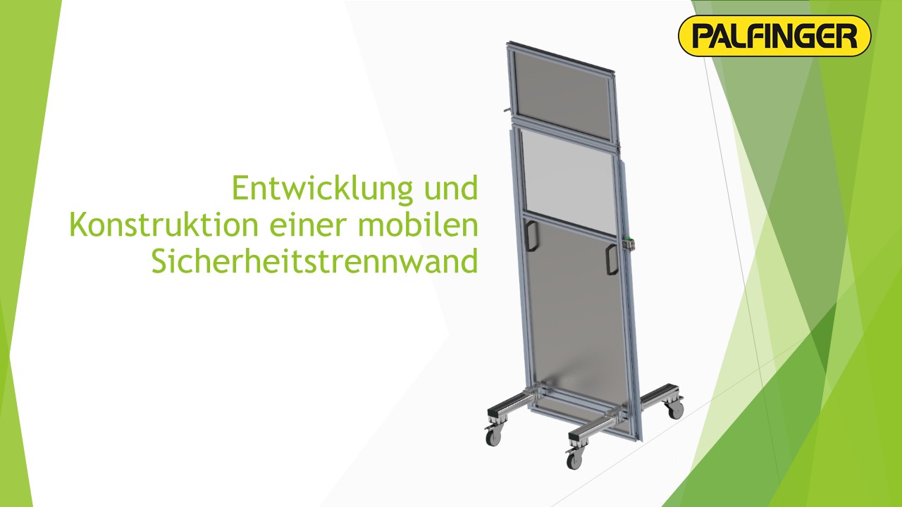 In der Testabteilung der Palfinger Europe GmbH werden täglich Bauteile und Werkstoffe geprüft. Um diesen Vorgang möglichst sicher zu gestalten, soll eine mobile Sicherheitstrennwand, die vor Bauteilversagen, Ölaustritten und ähnlichen Gefahren schützen soll, entwickelt werden.