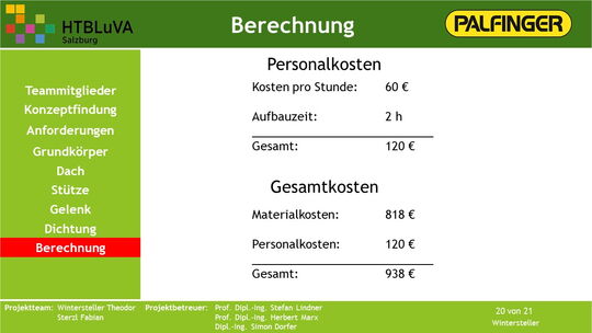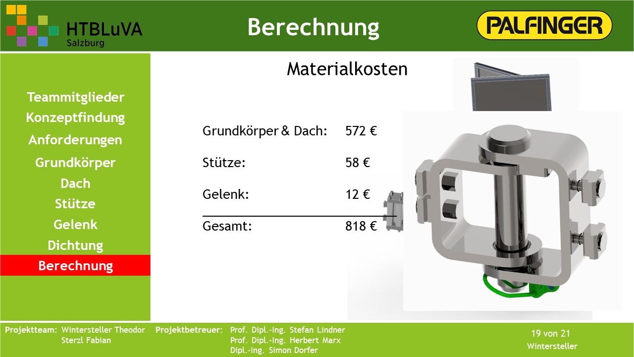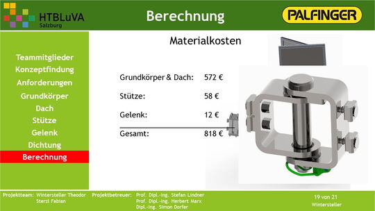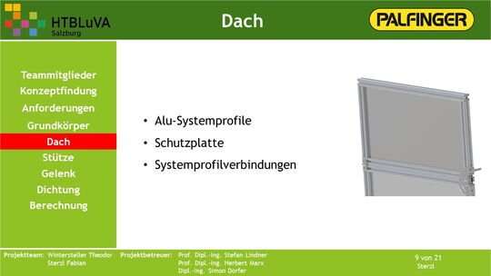 Das Ergebnis des Projekts ist ein Creo Modell einer voll funktionsfähigen und fertigbaren Sicherheitstrennwand, die den Arbeitern der Testabteilung der Palfinger Europe GmbH Schutz am Arbeitsplatz bietet.