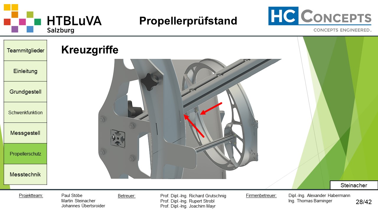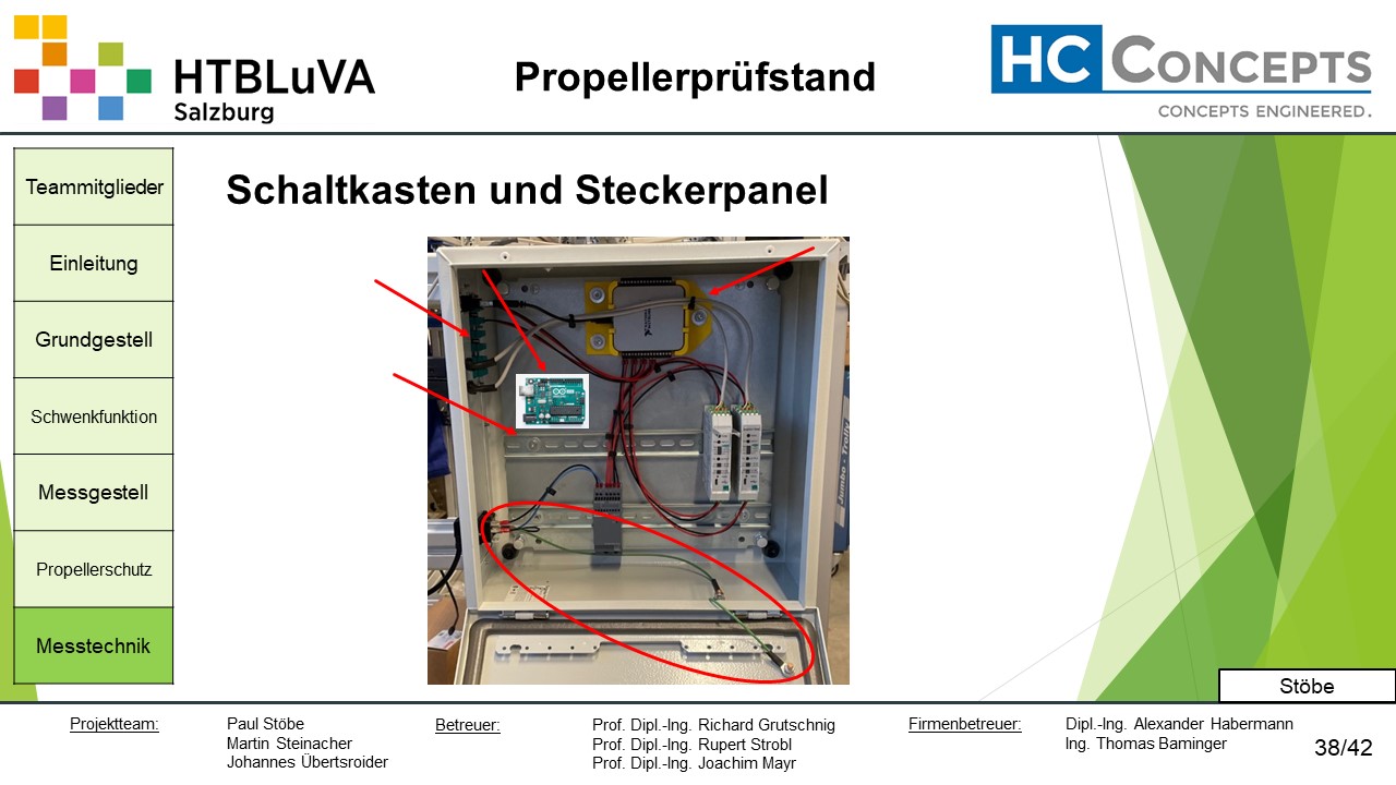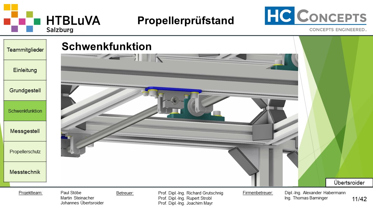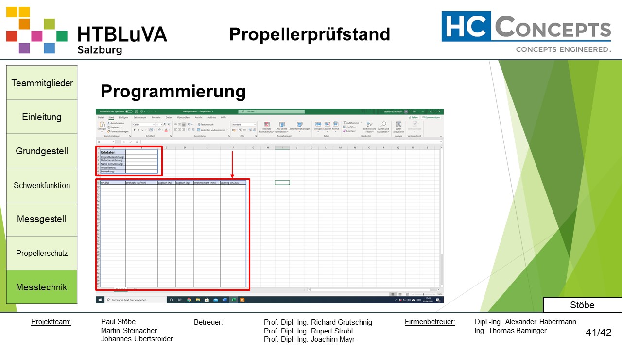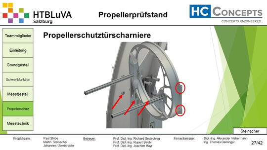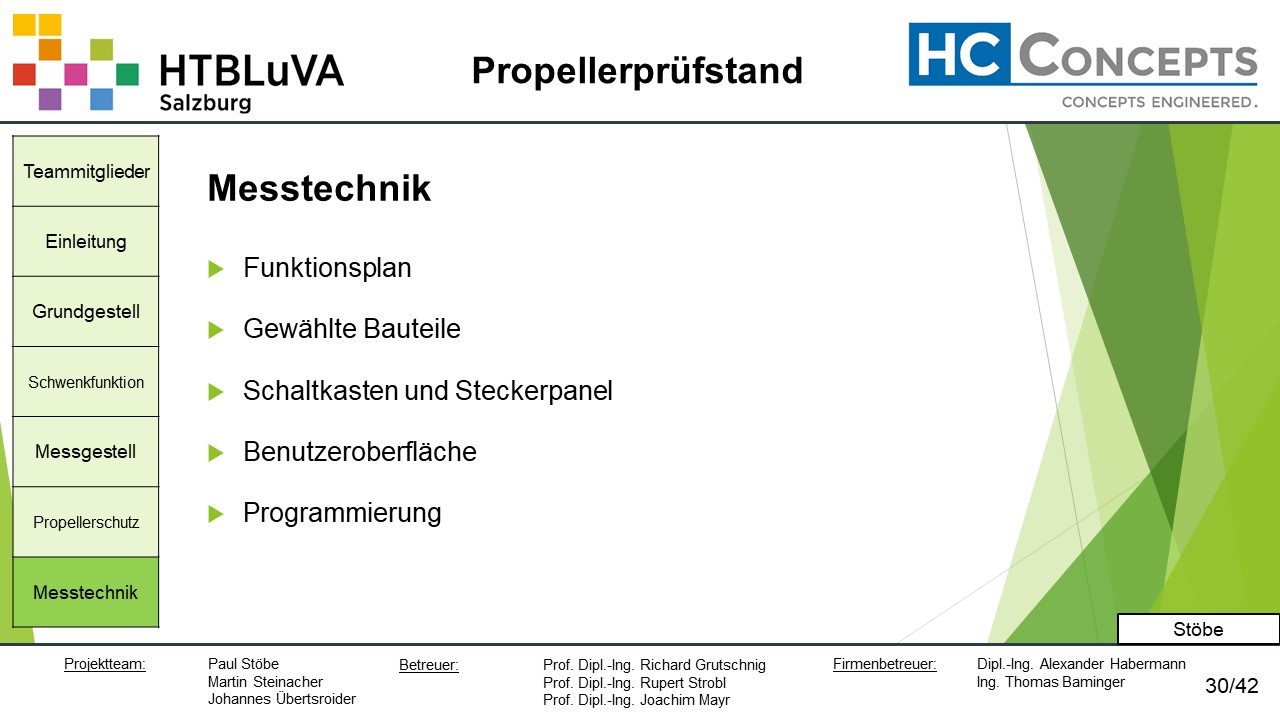 Die Firma HC-Concepts entwickelt unter anderem einen Verbrennungsmotor für Drohnen und für größere Modellflugzeuge. Hierfür wird ein Prüfstand benötigt, auf dem der Motor mit dem zugehörigen Propeller montiert und getestet werden kann. Der Prüfstand soll in der Lage sein, alle wichtigen Motordaten zu loggen und dabei die Schubkraft und das auftretende Kippmoment zu messen.