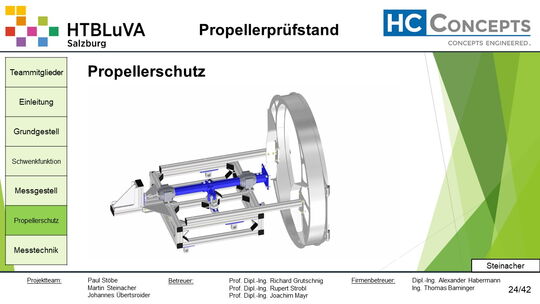 Das Ergebnis dieses Projektes sind die erfolgreiche Entwicklung, Konstruktion und Fertigung des Propellerprüfstandes.