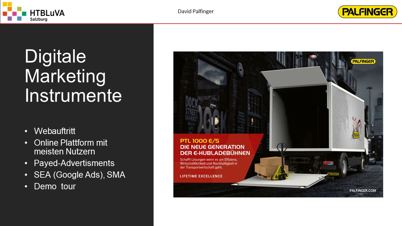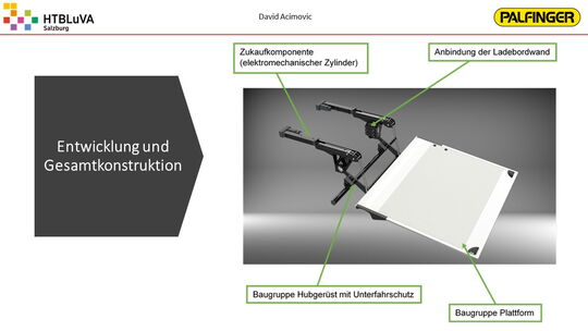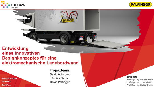 Ladebordwände werden üblicherweise über einen elektrohydraulischen Antrieb angetrieben. Da hydraulische Antriebe einige Nachteile aufweisen, soll für die Firma Palfinger ein kostengünstiges elektromechanisches Konzept auf Basis C1000 (1000 kg Traglast) entwickelt werden. Dabei sollen neben der technischen Lösung die Erfüllung der Kundenanforderungen sowie die wirtschaftlichen Aspekte beachtet werden, um das Produkt erfolgreich am Markt anbieten zu können.