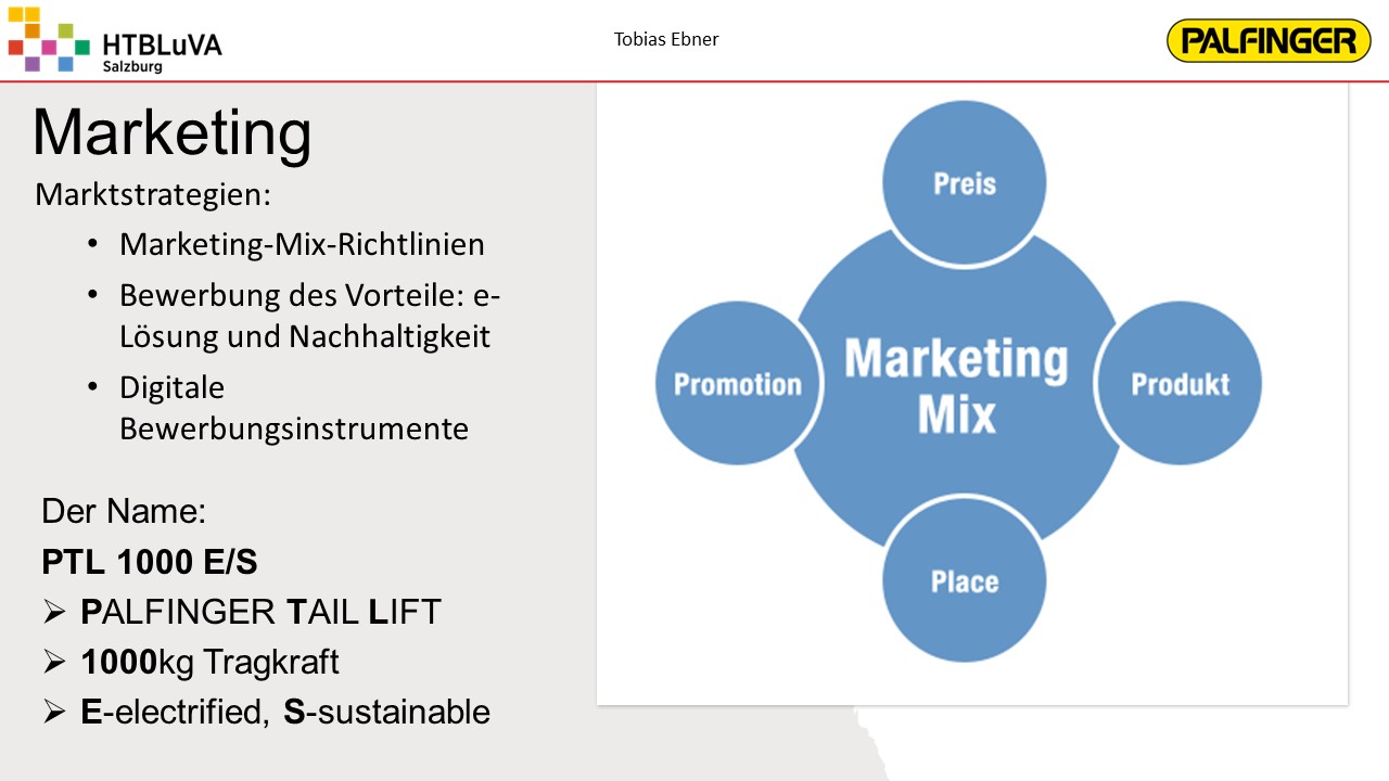 Das Ergebnis ist eine vollfunktionsfähige und vollelektrische Ladebordwand mit einem sehr ansprechenden Design, die eine maximale Traglast von 1000 kg aufweist. Über die Weiterentwicklung der elektrischen Ladebordwand wird basierend auf unserer Diplomarbeit firmenintern entschieden werden. Weiters wurde ein Marketingkonzept erarbeitet zur Untersuchung des Vertriebspotentials und zur Bereitstellung von Material für die Verkaufsförderung.