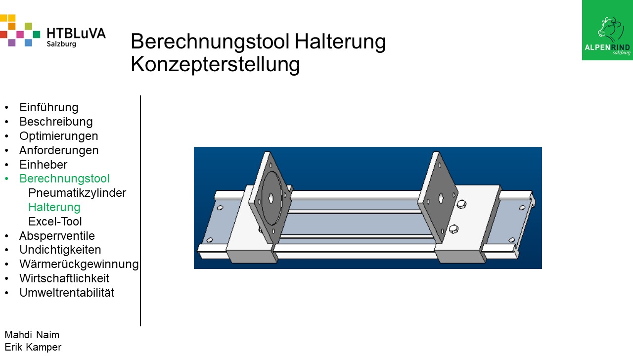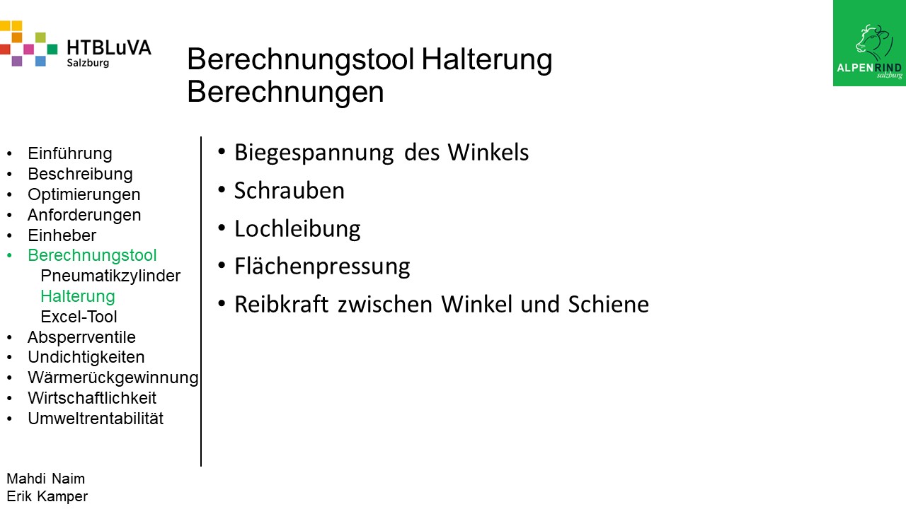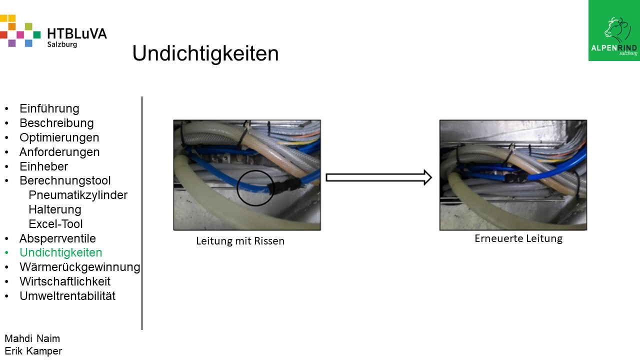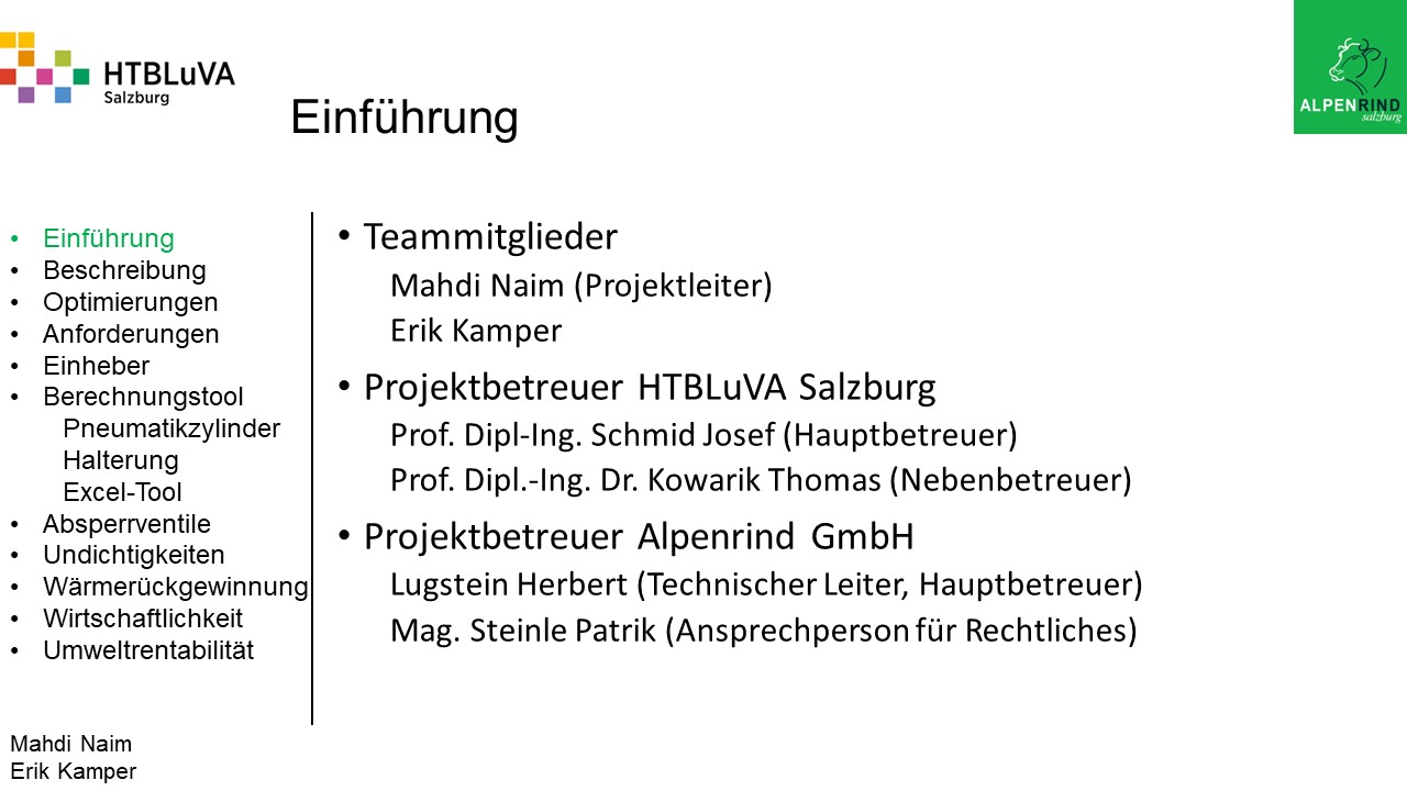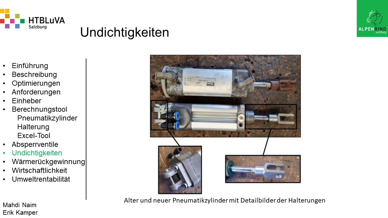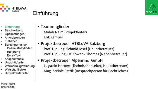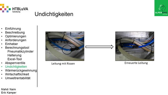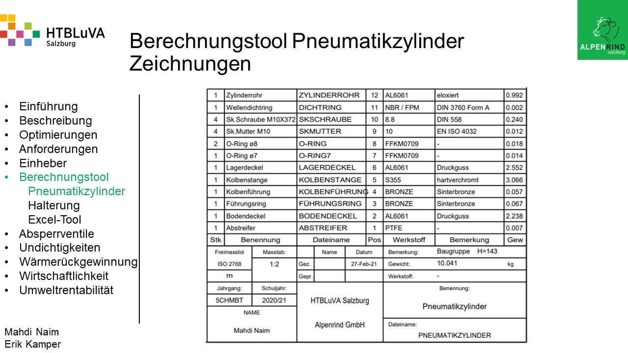 Die Firma Alpenrind betreibt verschiedene Pneumatik Anlagen. Dabei tritt das Problem auf, dass durch unterschiedlich hohe Druckniveaus hohe Energieverluste auftreten. Die Aufgabe ist es, die Pneumatik Anlagen neu zu dimensionieren und konstruktiv anzupassen, um die Verluste zu minimieren.