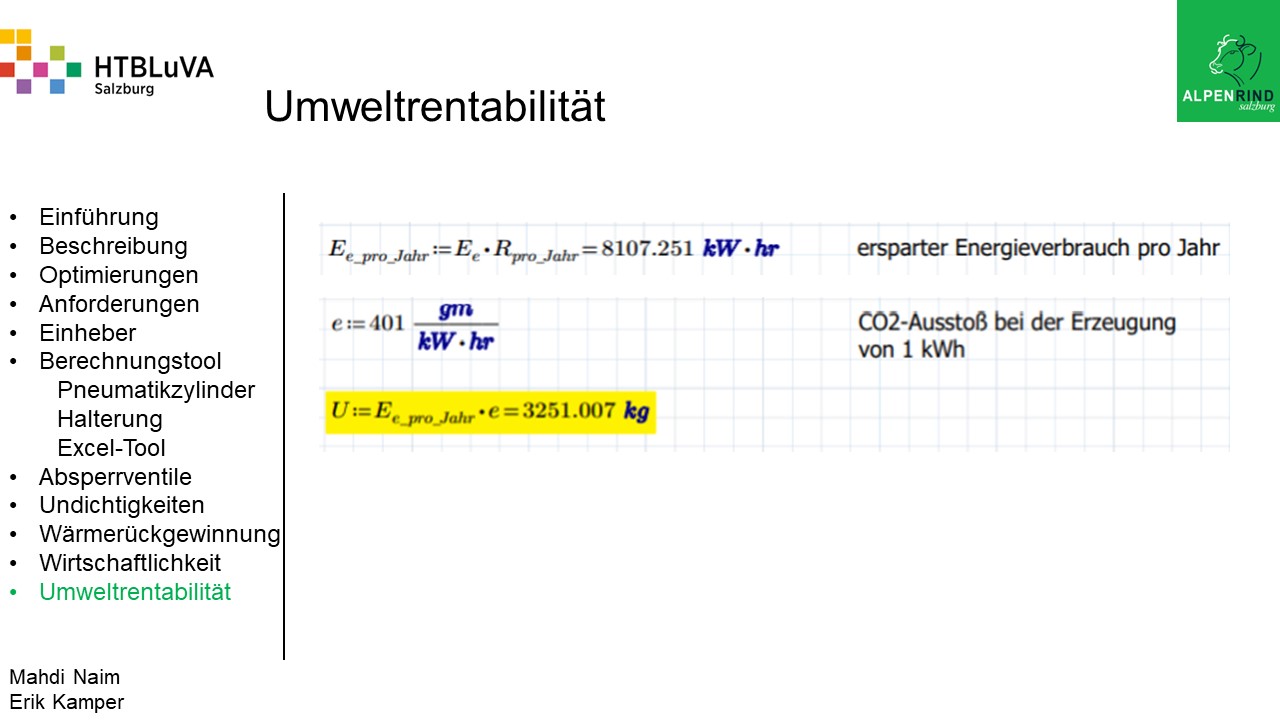Das Ergebnis dieses Projektes soll ein rentabler und umweltfreundlicher Betrieb verschiedener Pneumatikanlagen sein, welcher durch unser Berechnungstool weitergeführt werden kann.