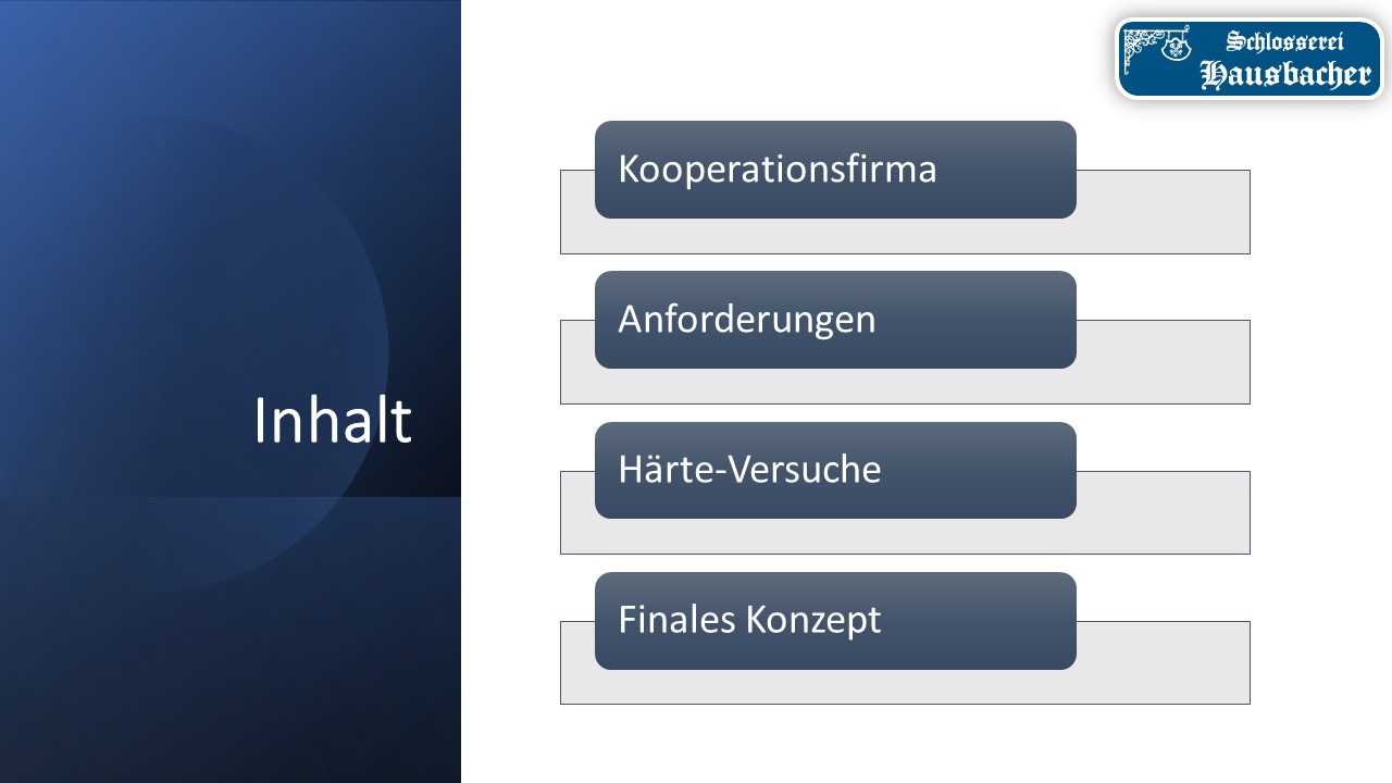 Gemeinsam mit der Schlosserei Hausbacher entwickeln die zwei Schüler ein Klappmesser aus Damaststahl, welches einen austauschbaren Griff mit zusätzlicher Federunterstützung aufweisen soll. Hierfür werden vier verschiedene Stähle mit dem Härteprüfverfahren untersucht und die Messergebnisse verglichen. Je nach Stahl, der die notwendigen Werkstoffeigenschaften aufweist, wird in späterer Folge für die Herstellung des Klappmessers verwendet. Das Augenmerk dieser Diplomarbeit liegt am außergewöhnlichen Design und der leichten Handhabung des Griffes. Weiters soll der Griff austauschbar sein wodurch spezielle Wünsche unserer Kunden gewährleistet werden können. Durch diese Funktion erlaubt es uns auch spezielle Werkstoffe wie Moabi Holz oder Geweih zu verwenden. Die Ergebnisse sind die erfolgreiche Entwicklung und Konstruktion eines Klappmessers aus Damaststahl.