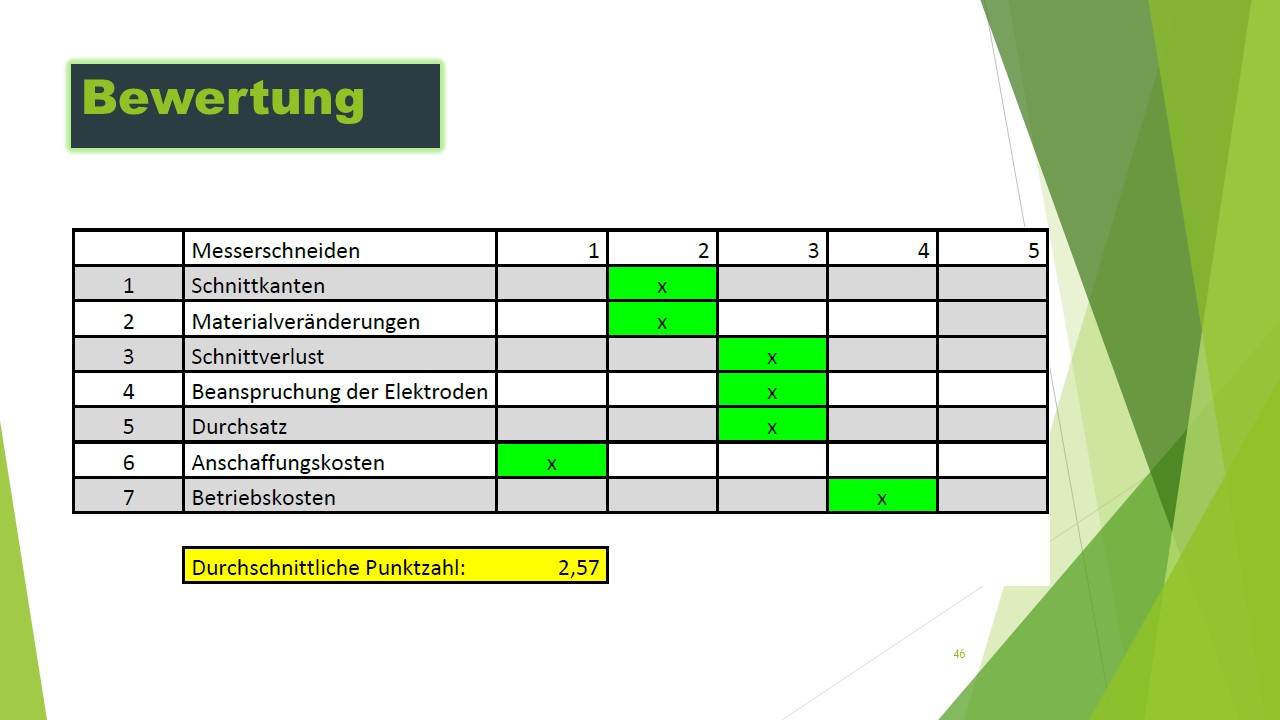 Ausarbeitung mehrerer unterschiedlicher Konzepte, für den alternativen Schneidprozess der Elektroden. Analyse des bereits bestehenden Querschneiders. Betriebswirtschaftliche Analyse und Optimierung der Wartung und des Verschleißes.