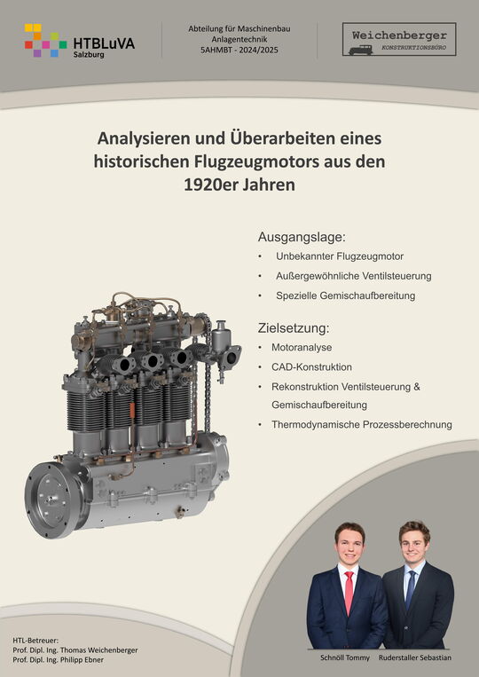 Ein vorhandener, unbekannter Flugzeugmotor aus den 1910 - 1920er Jahren mit außergewöhnlicher Ventilsteuerung und augenscheinlicher Benzineinspritzung soll analysiert und untersucht werden.