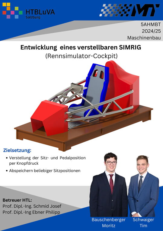Derzeit auf den Markt erhältliche SIMRIG (Rennsimulator-Cockpit) können meist nur manuell und kompliziert verstellt werden. Daher soll ein SIMRIG entwickelt werden, dessen Sitz- und Pedalposition automatisiert verstellt werden kann.