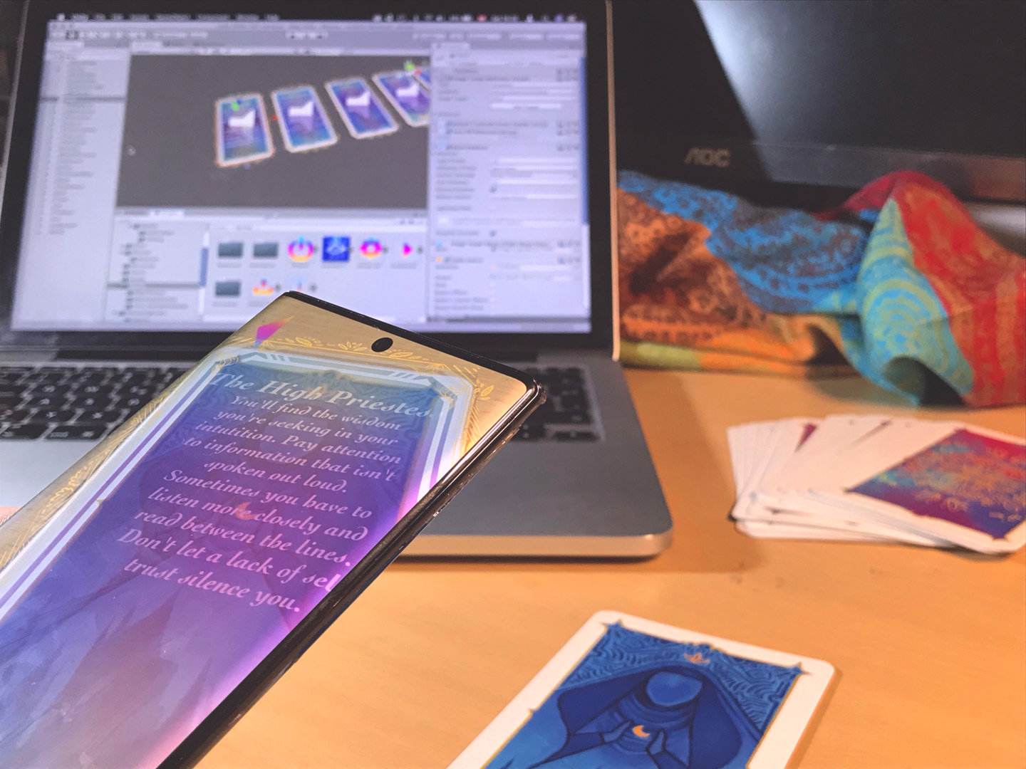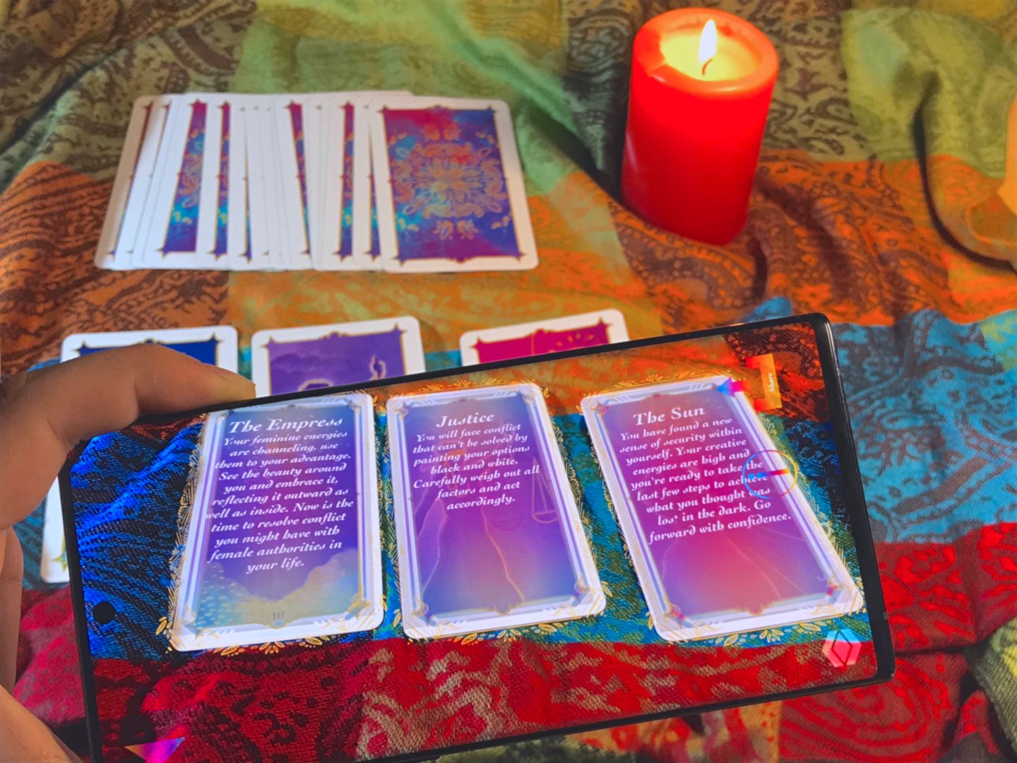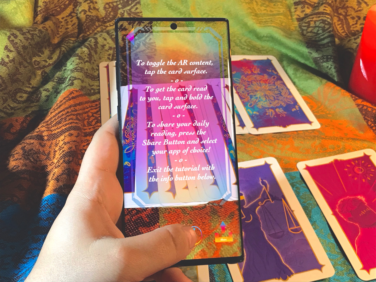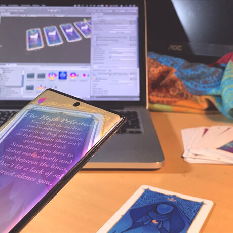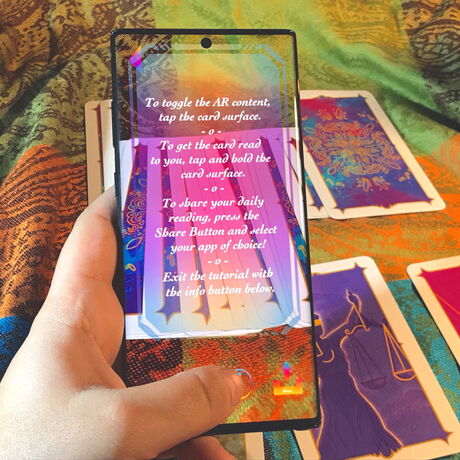 Das ARcana Deck ist ein illustriertes Tarot Kartenset, dass sich aus der großen Arkana zusammensetzt. Die Designs folgen der Rider-Waite Standardisierung und können für echte Tarot-Lesungen verwendet werden. Die 22 Karten zeigen durch die (für Android-Geräte verfügbare) App die Bedeutungen direkt auf der Karte an und können auch vorgelesen werden. So wird ein interaktives Erlebnis aus Mystik und Technologie erschaffen, das zwei verschiedene Aspekte auf eine Weise vereint, neue Möglichkeiten für beide Medien in den Vordergrund rückt. Die App erspart