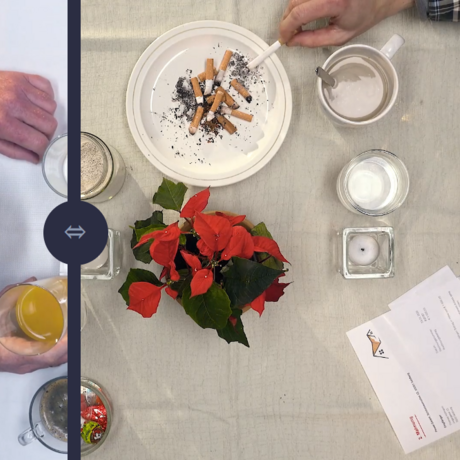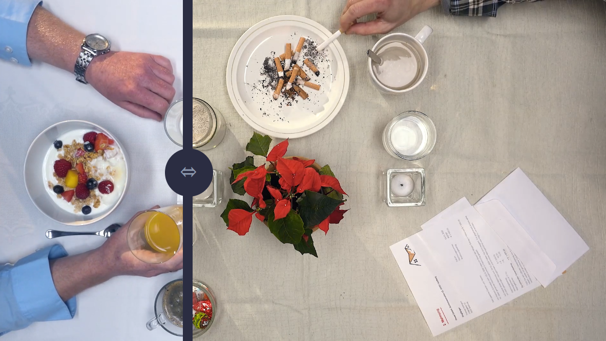 Die beiden verschiedenen Handlungsstränge laufen zeitgleich in einem Videoplayer ab und werden durch einen Slider in der Mitte getrennt. Anfangs sieht man je eine Hälfte der Videos, der Slider kann während des gesamten Videos verschoben werden, um so verborgene Elemente des anderen Handlungsstrangs preiszugeben. Dem User*Der Userin ist es so möglich, selbst zu bestimmen, welche Teile der Geschichte er*sie sehen will. Die Videos beinhalten Elemente, die eine visuelle Verbindung der beiden Seiten schaffen. Die Qualität dieser Elemente unterscheidet sich aufgrund der sozialen Gegebenheiten, so wird beispielsweise durch Bewegen des Sliders aus einer teuren Porzellanschüssel ein alter Teller, welcher als Aschenbecher verwendet wird. Die Einbettung des Sliders macht es notwendig, das Video auf einer eigenen Website zu präsentieren, damit es korrekt abgespielt werden kann. Auf der Website befinden sich noch weitere Ressourcen und Informationen zum Projekt.