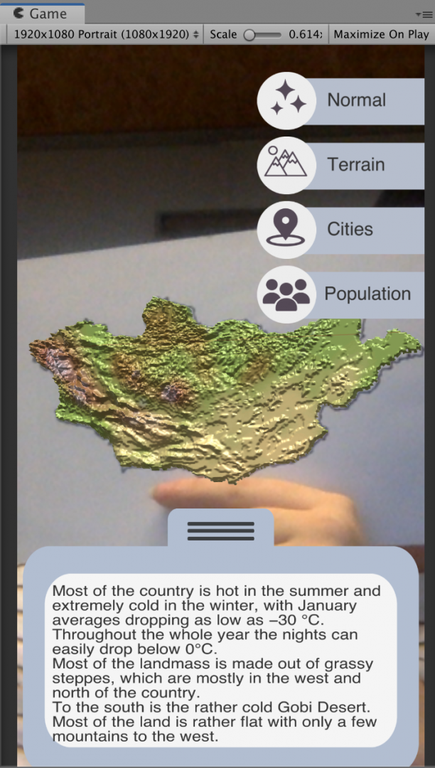 Whereabouts: Mongolia ist das erste Buch einer potentiellen Serie. Das Buch selbst ist ein minimalistisches Fotobuch, mit ein paar Illustrationen. Zur Unterstützung, können erweiterte digitale Inhalte, um mehr Verständnis für das Gezeigte zu geben. Um eben mehr von der Kultur zu erfahren, hat der/die Leser/In die Möglichkeit eine App herunterzuladen. In dieser kann man ausgewählte Fotos und Illustrationen verwenden um 3D Modelle von dem Gezeigten zu betrachten. Diese kann man frei drehen, und je nach 3D Modell gibt es noch mehr Funktionen.