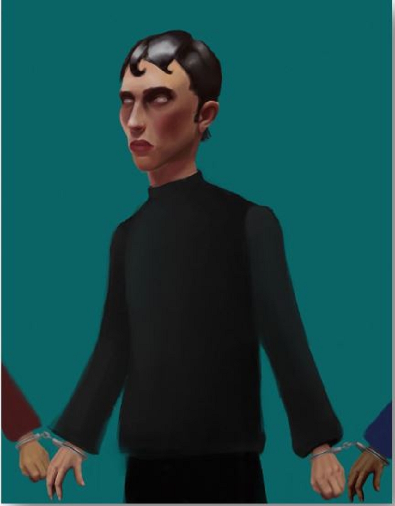 Grafik von Lena Eder: Demokratie bedeutet für mich nur Freiheit, wenn sie die Freiheit anderer nicht einschränkt. Mein Wunsch ist es also, dass die Bevölkerung darüber nachdenkt, welchen Impact ihre Handlungen auf andere haben könnte. Diesen Wunsch habe ich in meiner Illustration visualisiert, indem ich eine Person abgebildet habe, welche mit Handschellen an zwei andere Personen gekettet ist. Durch diese Handschellen sind demjenigen die Hände nicht gebunden, er kann diese weiterhin frei bewegen. Jegliche Bewegung hat jedoch einen direkten Impact auf die beiden Personen, welche an ihn gekettet sind.