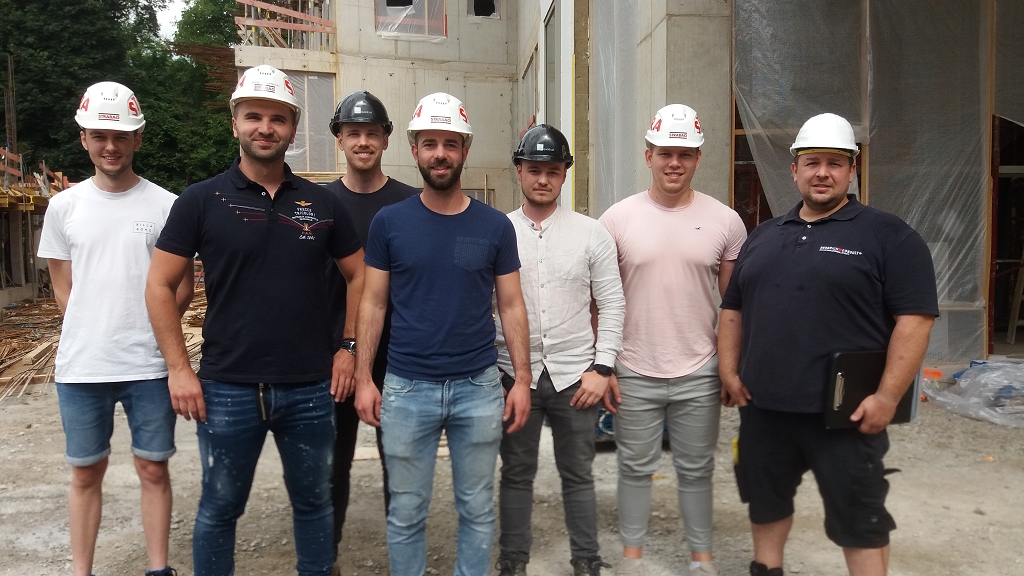 Herr Ebner, Bauleiter für den Rohbau, Herr Stojanovic, Bauleiter für den Innenausbau, und Herr Kastner vom Bauträger Planquadrat erklärten die für die einzelnen Bauabschnitte wesentlichen Maßnahmen: