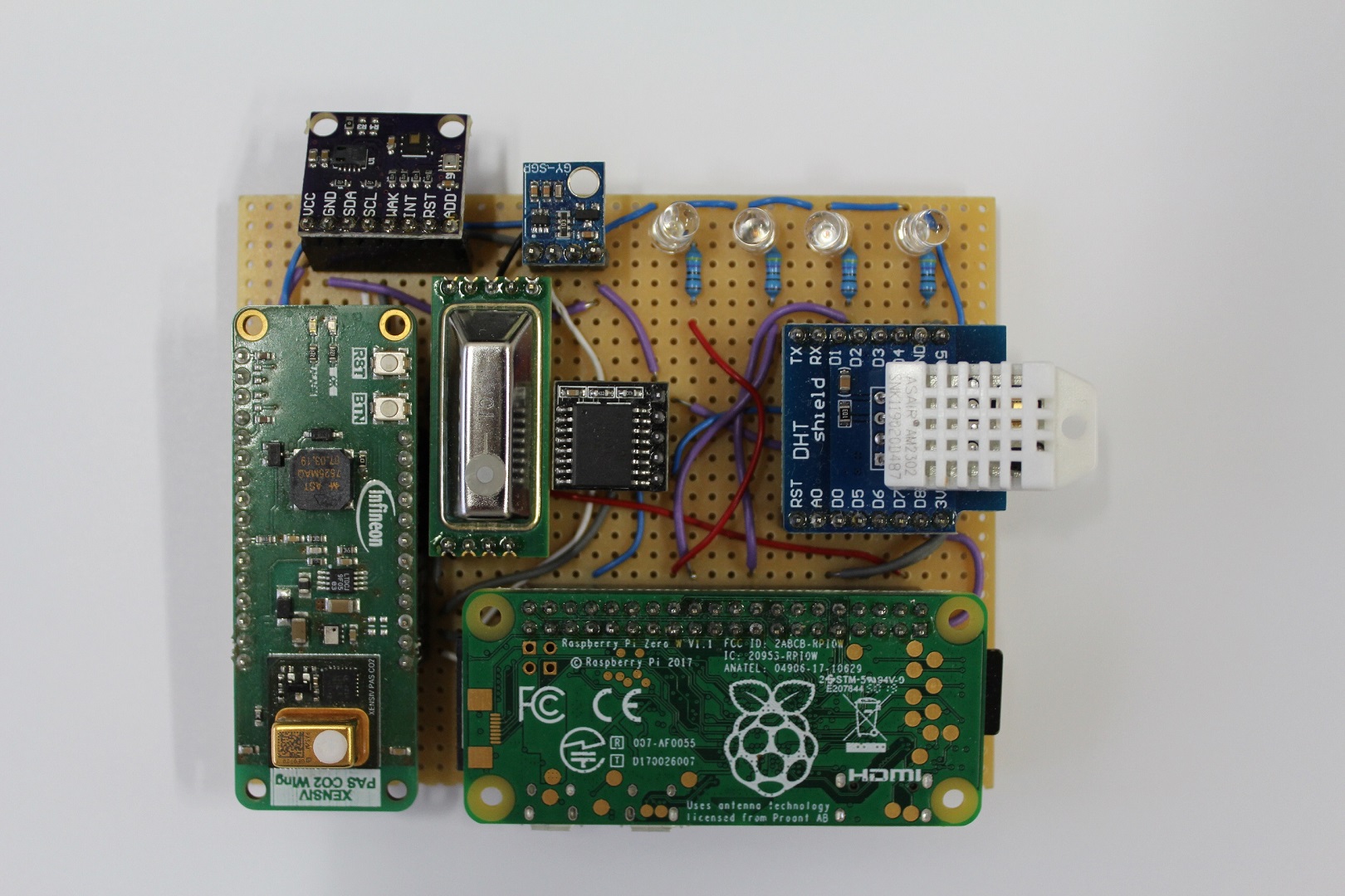 Mit der Lieferung der ersten Prototypen der CO2-Sensoren von Infineon entstanden im Zuge einer Diplomarbeit unsere ersten Prototypen des CO2-Messgeräts und der Auswertesoftware. Die Bilder zeigen Breakoutboards mit PASCO2-Sensoren dieser frühen Phase und unsere ersten Prototypen der CO2-Messgeräte. Ab Ende 2020 bzw. Anfang 2021 verfügten wir über drei voll funktionsfähige Messgeräte, siehe u.a. Video 1 und Video 2. Ein Gerät wurde für einen Dauertest in einem Klassenzimmer abgestellt, mit dem zweiten Gerät führten wir laufend Messungen in unterschiedlichen Umgebungen durch. Das dritte Gerät diente der Weiterentwicklung. Zum Ende des Schuljahres 2020/21 war eine durchgängige Lösung inkl. Auswertung mit nur mehr wenigen Verbesserungserfordernissen vorhanden. Das Video 3 zeigt den Prototypen der Software für die Auswertung.