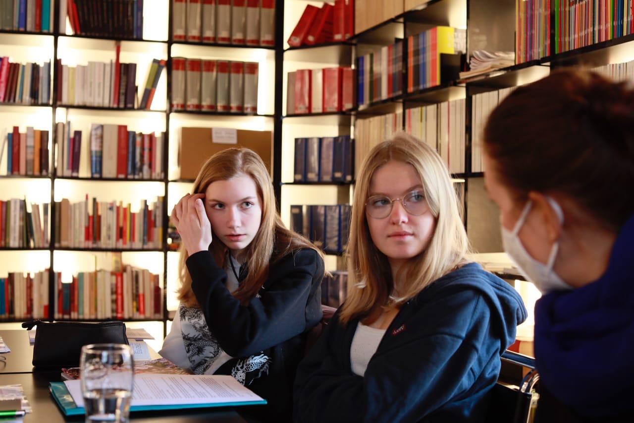 Beim ersten Treffen fanden wir uns um 10.00 Uhr im Literaturhaus ein und setzten uns in einem großen und hellen Saal zusammen, um uns kennenzulernen. Die Stimmung war reserviert, was sich nach einer netten Vorstellrunde legte. Wir, drei Mädels aus der 1BHBTT (Simin, Amelie, Mirja), lernten dort sechs Apropos-Autor*innen und zwei Schülerinnen aus der PTS (Polytechnische Schule) kennen. Nachdem wir eine Inspiration für unsere Schreibaufgabe bekommen haben, verteilten wir uns am Gelände des Literaturhauses, um unserer Kreativität freien Lauf zu lassen. Mittags machten wir eine Pause, nach der wir den anderen einen kleinen Einblick in unseren Text gaben, indem wir den ersten Satz vorlasen.