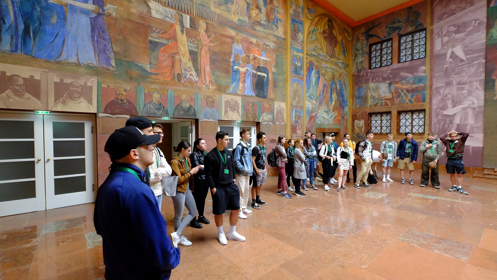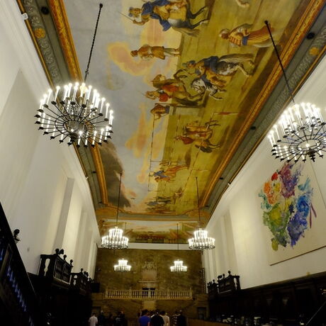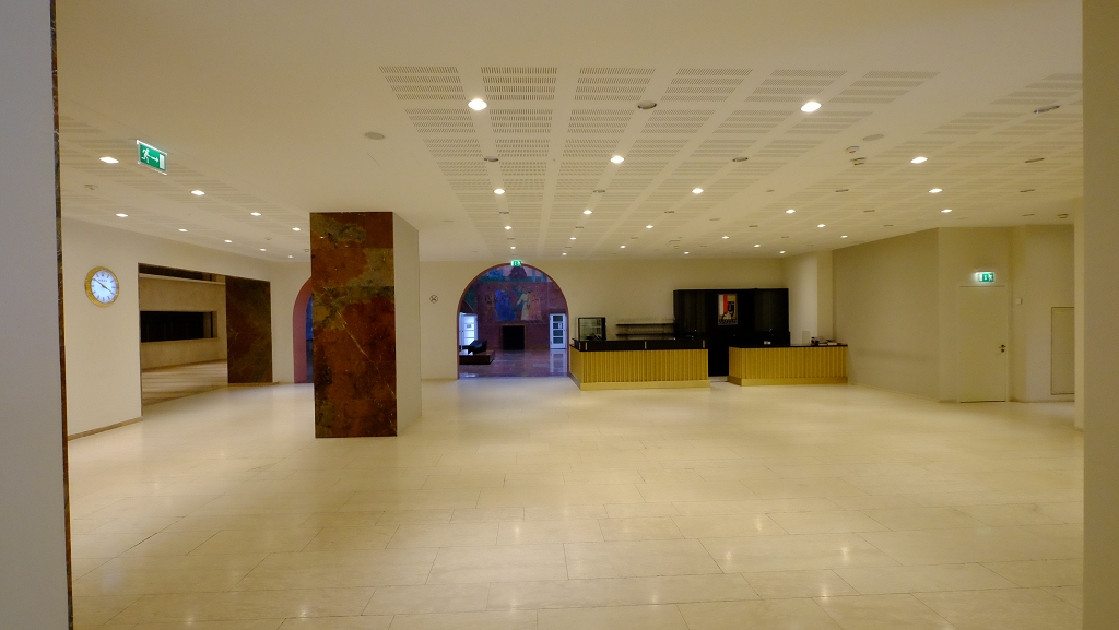 Wir, die 4CHBTH, erhielten von einem Mitarbeiter des Festspielhauses Salzburg, eine Führung durch die verschiedenen Spielstätten. Gestartet haben wir mit einem kleinen geschichtlichen Überblick und Grundinformationen. Anschließend zeigte er uns das große Swarovski “Bild“ in der Eingangshalle, wo das Gesicht von Mozart abgebildet ist. Danach ging es für uns in den Karl-Böhm-Saal, der früher als Winterreitschule genutzt wurde und nun als Pausensaal dient. Wir sahen pompöse Malereien an der Decke des Künstlers Michael Rottmayr (1690), er bildete das sogenannte “Türkenstechen“ ab. Von der ehemaligen Winterreitschule aus ging es in die Felsenreitschule, genauso wie im Karl-Böhm-Saal beendet auch hier der Mönchsberg den Saal.