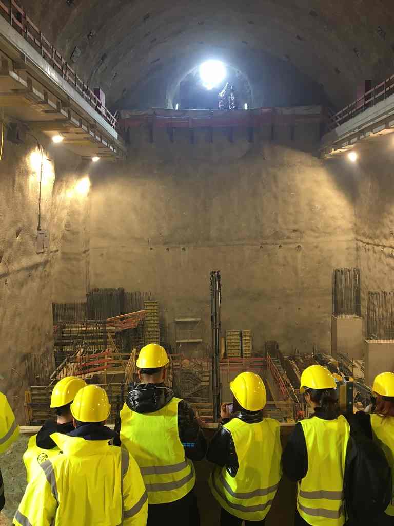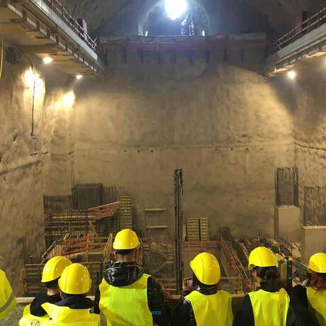 Nach einer ca. zweistündigen Fahrt von der HTL Salzburg zum Enzingerboden im Stubachtal erreichten wir die Baustelle des Pumpspeicherkraftwerks Tauernmoos auf ca. 1480 m ü.A. Das von den ÖBB in Auftrag gegebene Projekt befindet sich unter Tage und ist nur durch ein bergmännisch vorgetriebenes 11 km langes Tunnelsystem inklusive Kaverne erreichbar. Nach einer kurzen Projektvorstellung ging es für uns gleich in den Berg hinein. Hauptziel war mitunter die ca. 72 m lange, 25 m breite und 40 m hohe Kraftwerkskaverne, in der ab 2025 mit zwei Francis-Turbinen und 220 m Fallhöhe insgesamt 460 GWh Strom pro Jahr für den Eigenverbrauch der ÖBB erzeugt werden sollen. Die Kaverne befindet sich rund 100 m unter Granit- und Gneis-Schichten und wird mit etwa 80 m3 Wasser pro Sekunde aus zwei Stauseen nordwestlich des Großglockners gespeist. Einen großartigen Abschluss gewährte uns das Panorama am 2000 m hohen Tauernmoossee.