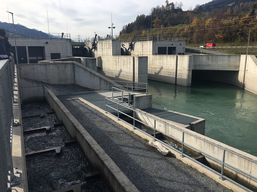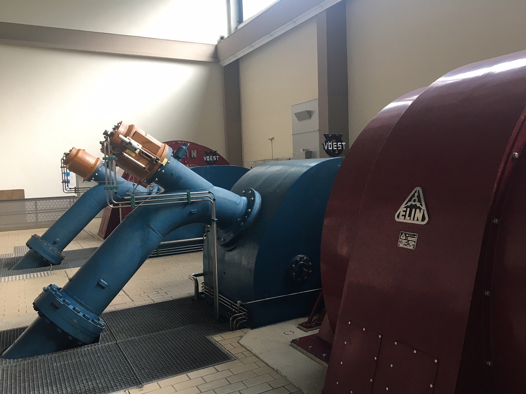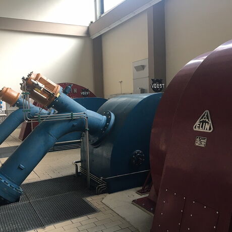 Das zweite besichtigte Kraftwerk war das Laufkraftwerk Gries an der Salzach. Das Gemeinschafts-kraftwerk von VERBUND und Salzburg AG ist auf dem neuesten Stand. Die Besonderheiten dieses Projekts sind die mittig angeordneten Wehrfelder und die kombinierte Fischwanderhilfe, um den natürlichen Lebensraum der Äsche und Bachforelle nicht zu beeinflussen. Beim Blick in das Krafthaus erfuhren wir, dass mit ca. 150m3 Wasser pro Sekunde und einer Fallhöhe von rund 8,9 m zwei vertikale Kaplanturbinen und Drehstromgeneratoren jährlich rund 42 GWh erzeugen, was den Strombedarf von ca. 10.000 Haushalten entspricht.