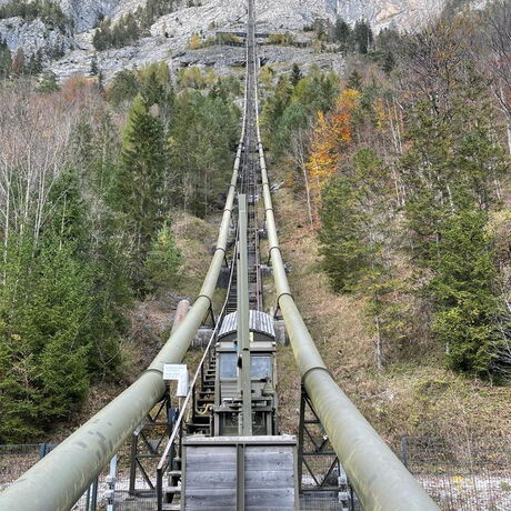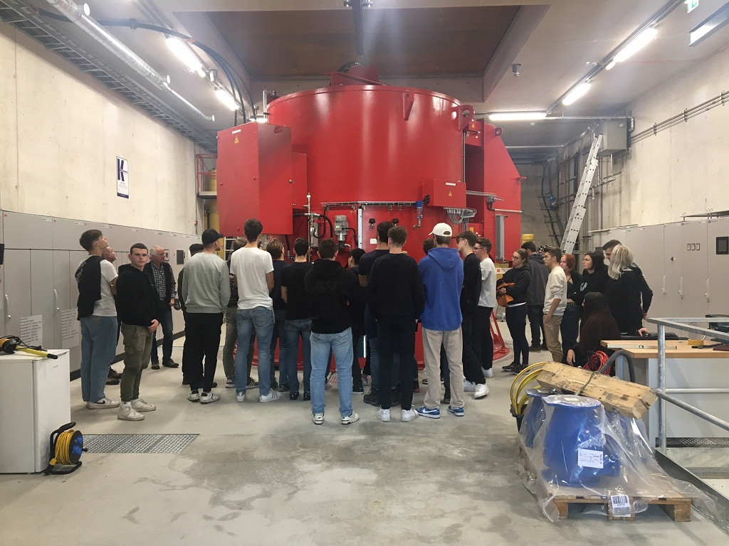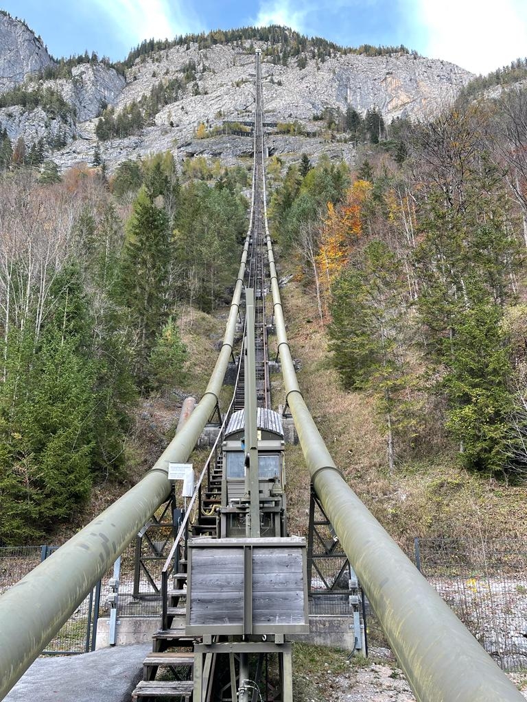 Zum Schluss besuchten wir das Kraftwerk Dießbach zwischen Saalfelden und Lofer, welches in den 60er Jahren erbaut und im Jahr 2017 zum Pumpspeicherkraftwerk ausgebaut wurde. Im Besitz der Salzburg AG erzeugt es insgesamt rund 36 GWh Strom pro Jahr. Nach der Besichtigung der beiden Peltonturbinen, die mit rund 72 bar Wasserdruck vom 728 m höheren Dießbachstausee gespeist werden, bekamen wir die neuen 24 Matrixpumpen in der Maschinenhalle zu Gesicht, die das Wasser bei niedrigen Strompreisen wieder zum Stausee hinaufpumpen.