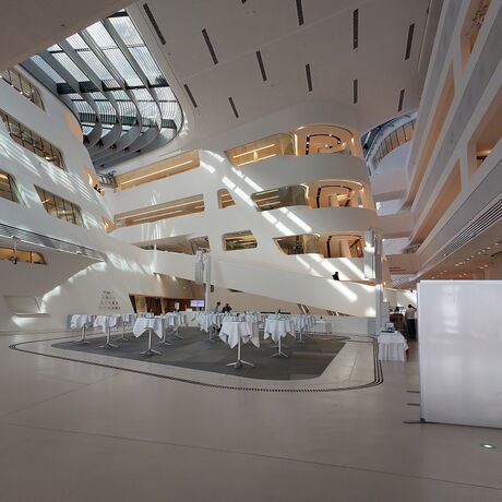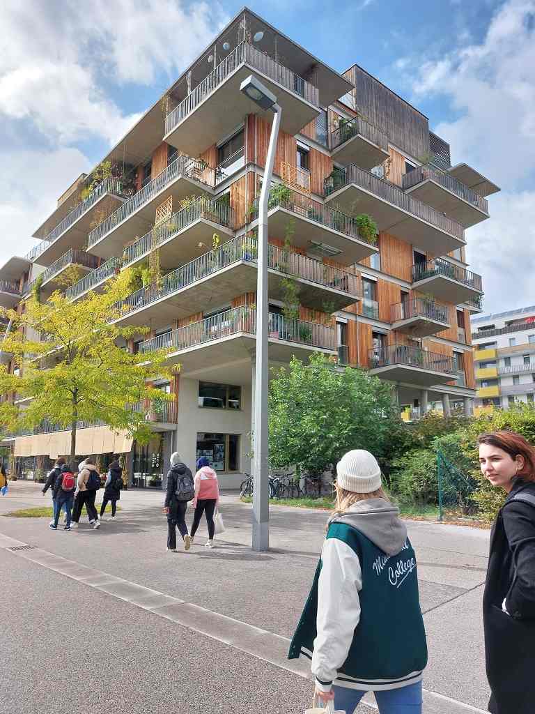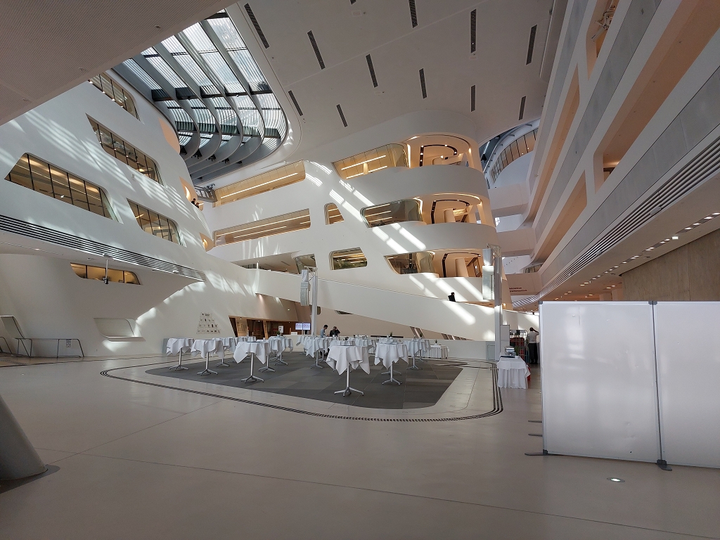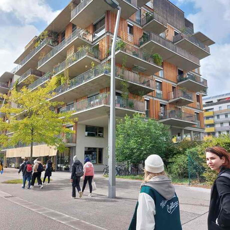 Tag 1 begann direkt nach der Ankunft am Westbahnhof mit der Besichtigung des neuen IKEA und grandiosem Ausblick auf Wiens Dachlandschaft. Der Versuch, die statische Konstruktion des Gebäudes zu analysieren, hat uns interessante Fakten erkennen lassen und uns gezeigt, dass die äußere prägnante rahmenartige Tragstruktur nicht mit dem System im Inneren zusammenhängt. Im Anschluss erfuhren wir in einer vom Architekturzentrum gestalteten Führung im 2. Bezirk mehr über die Entwicklung von Wohnbauten des Roten Wien, beginnend in den 1920er Jahren bis hin zu Stadtentwicklungsprojekten am Nordbahnhofgelände - sogar die Besichtigung einer Wohnung in den neu errichteten Gebäuden wurde uns ermöglicht. In unmittelbarer Nachbarschaft bot uns anknüpfend daran die beeindruckende Bibliothek von Zaha Hadid am WU-Gelände einen Blick in eine weitere großartige zeitgenössische Architektur, anschaulich von Kollegen Prof. DI Winter in Hinblick auf die Statik begreiflich gemacht.
