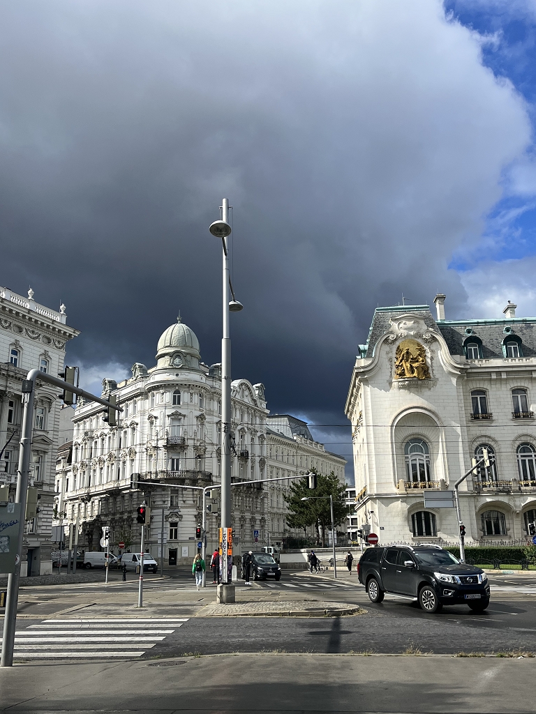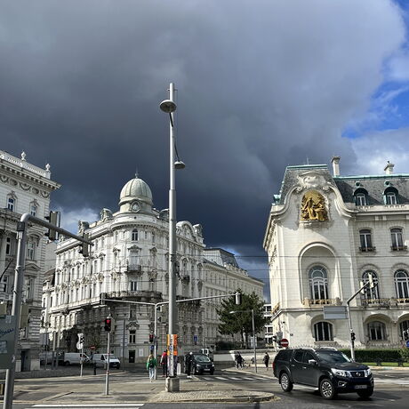 Die Leopoldstadt hat uns auch am Tag 2 beschäftigt. Mit dem Versuch, durch eine Freihandzeichnung die Überdachung am Wiener Hauptbahnhof zu visualisieren, starteten wir in den neuen Tag. Der Erste Campus als Verbindungsglied zwischen Hauptbahnhof und Schweizergarten bot uns ein Beispiel von nachhaltiger und moderner Bauweise und hat uns mit einem langen Spaziergang vorbei am Schloss Belvedere, an Karlskirche und Sezession bis hin zum Wahrzeichen von Wien geleitet. Ein Spaziergang geprägt von Architektur aus unterschiedlichen Epochen, mit zeitlichen Marksteinen und neuen Eindrücken. Das Wetter mit seinem ständigen Wechsel von Sonne, Regen, Wind und Kälte zeigte sich im Übrigen auch sehr abwechslungsreich.