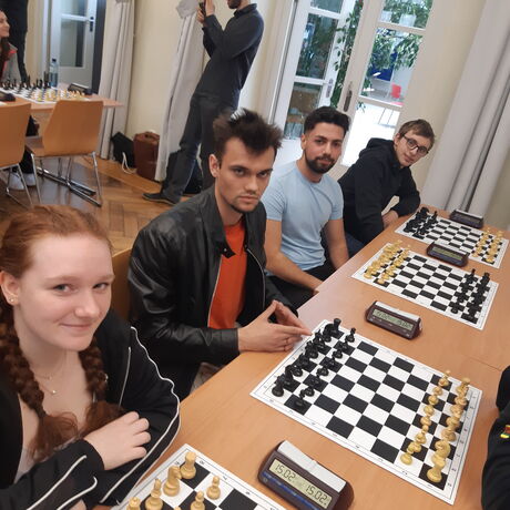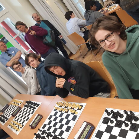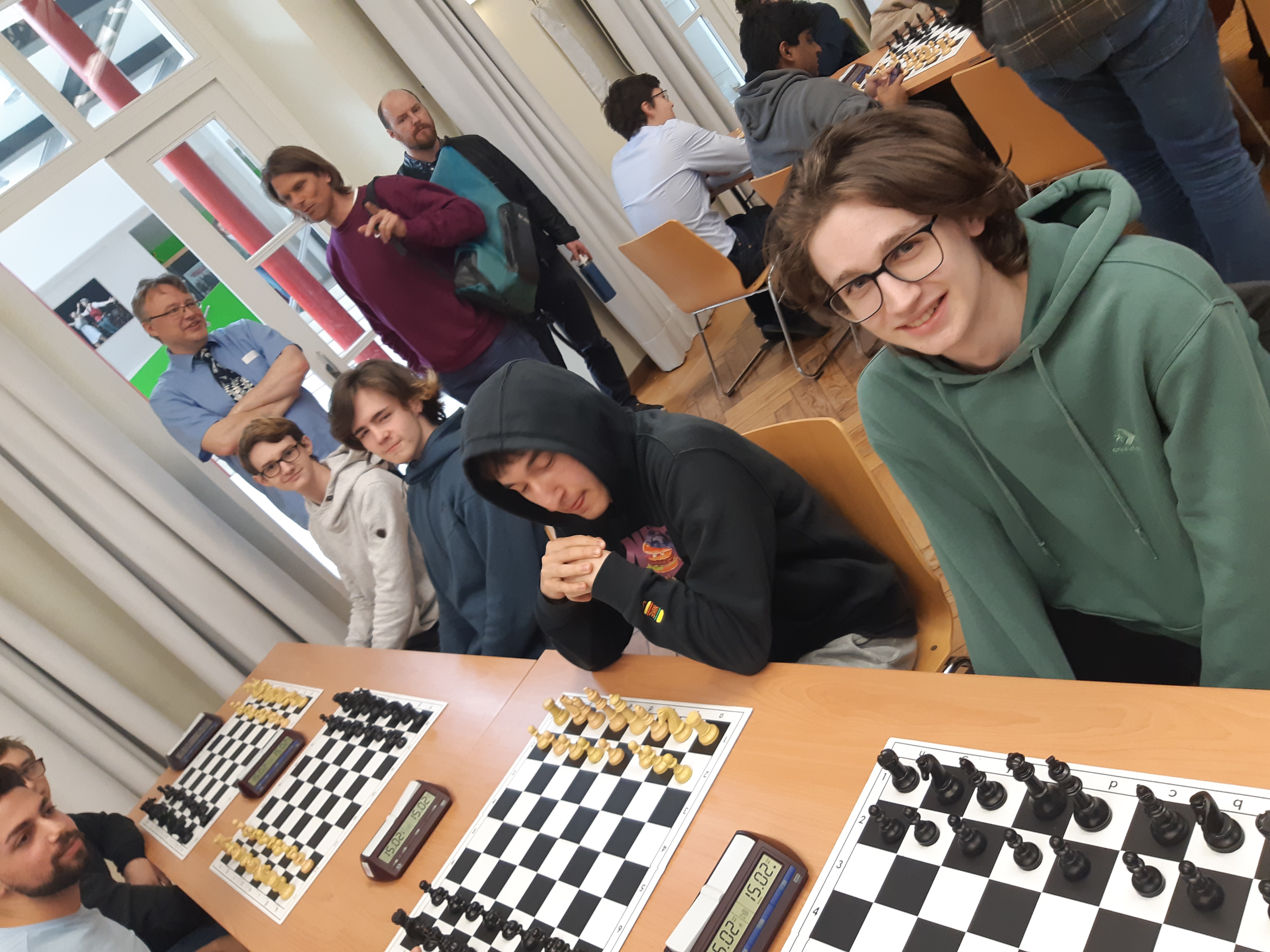 Vom Team des Schulschachs und dem Borromäum bestens organisiert trafen sich über 90 Schüler*innen zum Wettkampf auf den 64 Feldern. Wir traten mit zwei Teams an und konnten mit der „Ersten“ um den Titel mitspielen. Aber schon in der dritten Runde mussten wir eine knappe Niederlage gegen den späteren Landesmeister Borromäum hinnehmen, die ihren Heimvorteil nutzten und alle sieben Spiele gewinnen konnten. Danach lief es aber für beide Mannschaften von uns super und wir belegten Platz 9 und holten mit Team 1 mit 4 Siegen, zwei Unentschieden und nur einer Niederlage den Vizelandesmeistertitel.