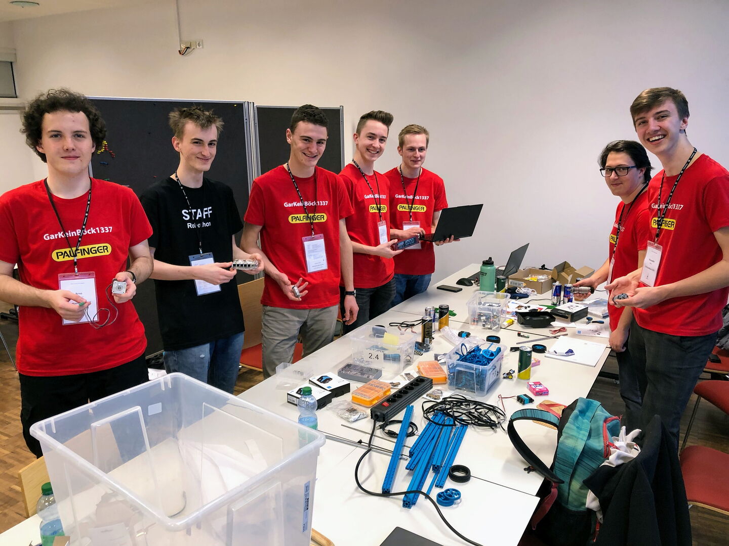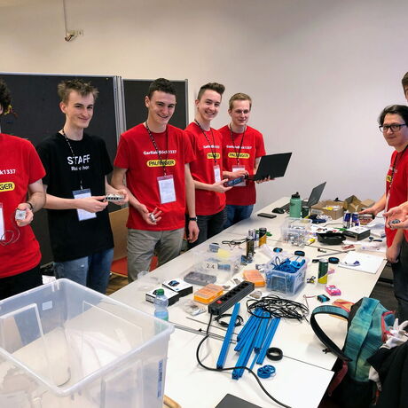 In diesem Jahr haben sechs Schüler der Abteilung Elektronik und Technische Informatik - Benedikt Mayer, Paul Sturm, Gerfried Berkenhoff, Christian Brandner, Marcel Sulzer und Arno Krenslehner - am Robothon teilgenommen und ihr technisches Know-how und ihre Kreativität unter Beweis gestellt. Das Team mit dem Namen „GarKeinBöck1337“ hat den Kreativpreis und den Publikumspreis gewonnen und hätte auch den Hauptpreis gewonnen, wenn ihr Design nicht zu smart für den Wettbewerb gewesen wäre ;-)