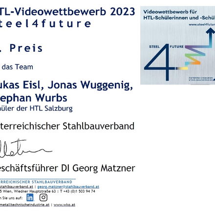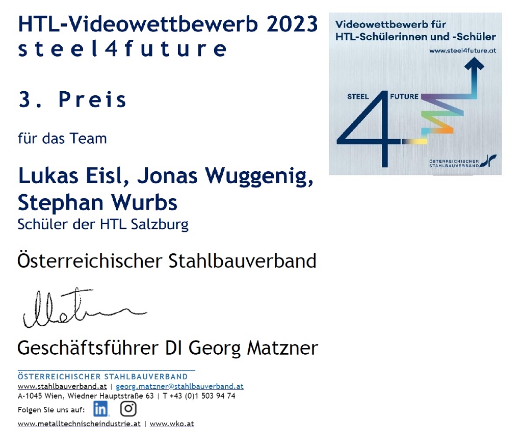 3. Platz beim steel4future-Videowettbewerb für Schüler der HTL Salzburg