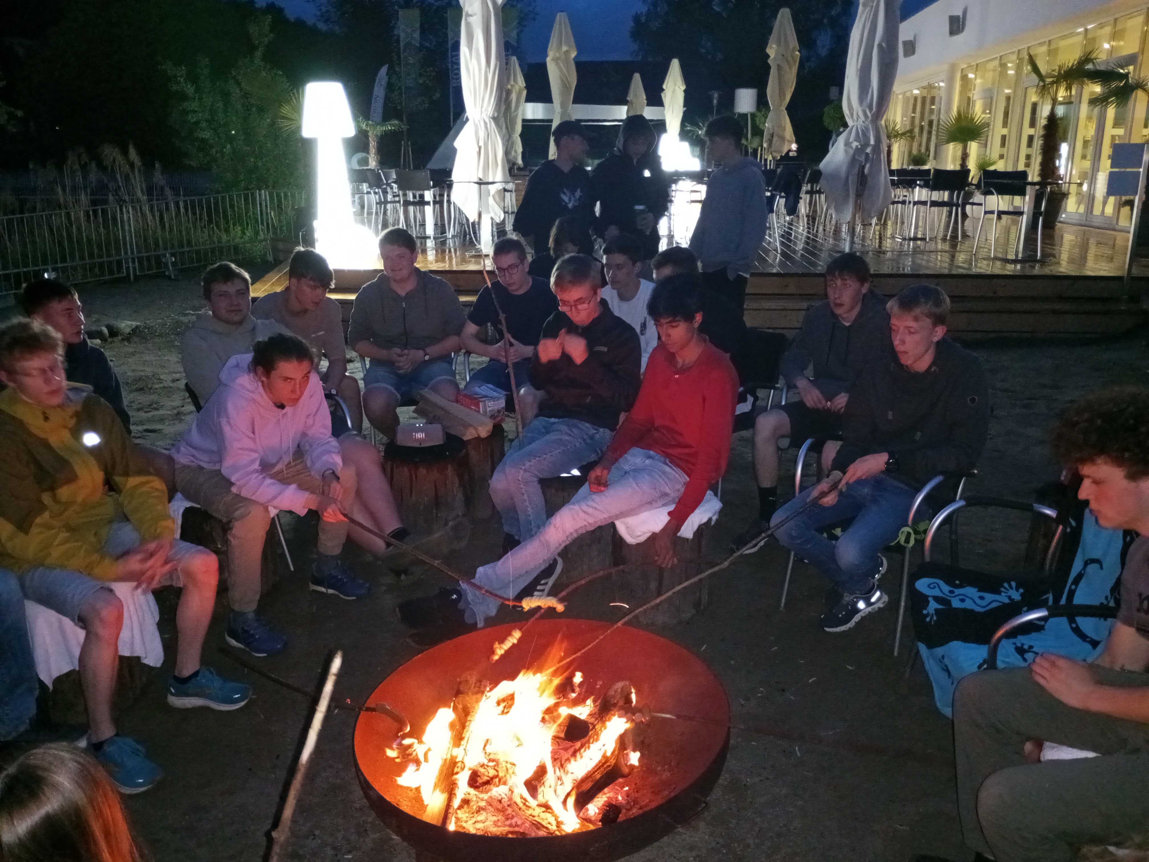 In der Freizeit wurde im See geschwommen, in der Sonne gebadet und, wie sollte es anders sein, weitergesportelt mit Basketball, Tennis, Fußball, Frisbee, Slackline und Beachvolleyball. Auch die Feuerstelle wurde genutzt, um Würstl und Stöckerlbrot über dem Feuer zu grillen.
