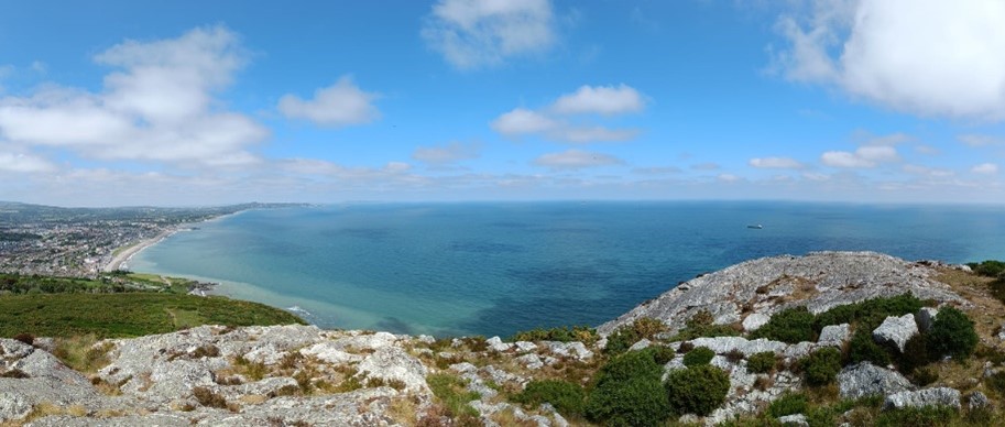 Embarking on the hike on Bray Head, we had a magnificent view of the sea from this hill. The walking tour was pleasantly short, leaving enough time to enjoy nature's beauty. At the summit, we took a break and ate a snack while enjoying the great panorama. Surprisingly, the weather was sunny the whole trip long (even the whole week long!), enhancing our experience. The trail involved some exciting climbs, adding adventure to the cliff walk. Descending proved confusing, splitting the group briefly, but in the end, all of us reached the destination Greystones safely. To make this outing more memorable, we collected wood for a bonfire a small group of us made at dusk, lugging it to the next town before catching the bus.