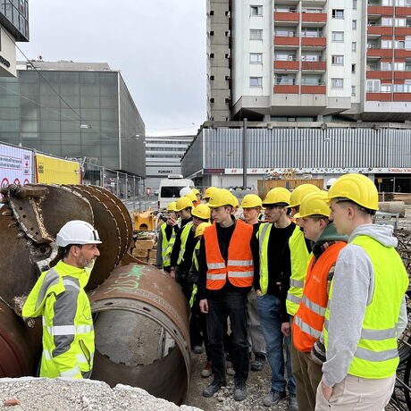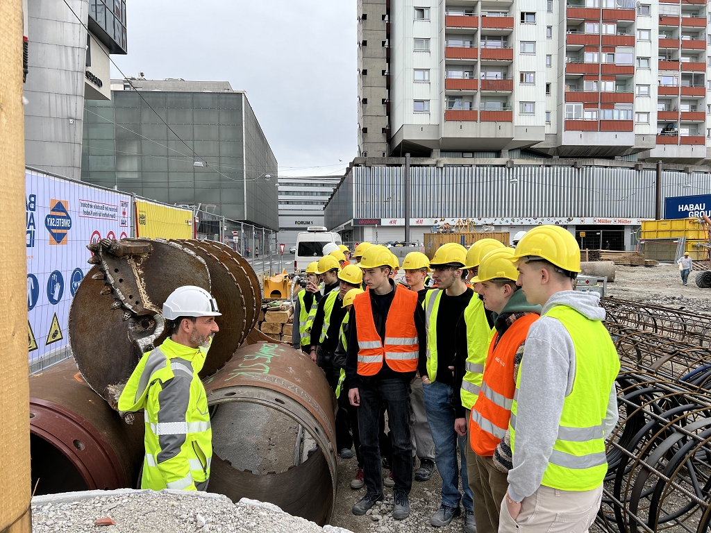 Allein die Erläuterungen zum Projekt und der Bauweise lassen schon ein einzigartiges Bauvorhaben erwarten, dessen Fortschreiten die Klasse mit Sicherheit mit großem Interesse verfolgen wird. Darüber hinaus aber stellten die Erklärungen am Bauplatz vor Ort in Anbetracht der gewaltigen Baumaschinen und Tiefbauverfahren, welche die unterirdischen Bauteile erstellen, eine große Faszination dar.